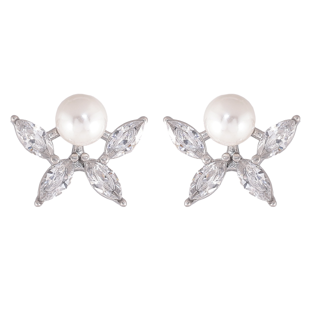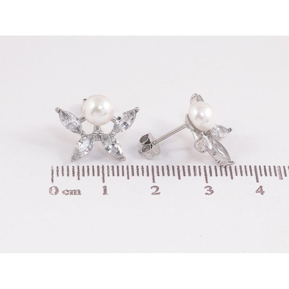 Серьги Нержавеющая сталь пусеты "Кристальные цветочки с жемчужинами"