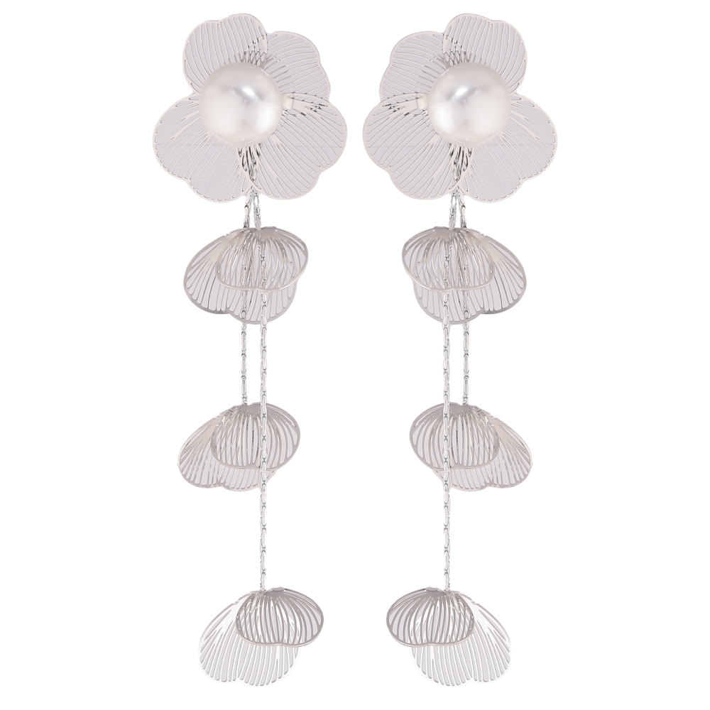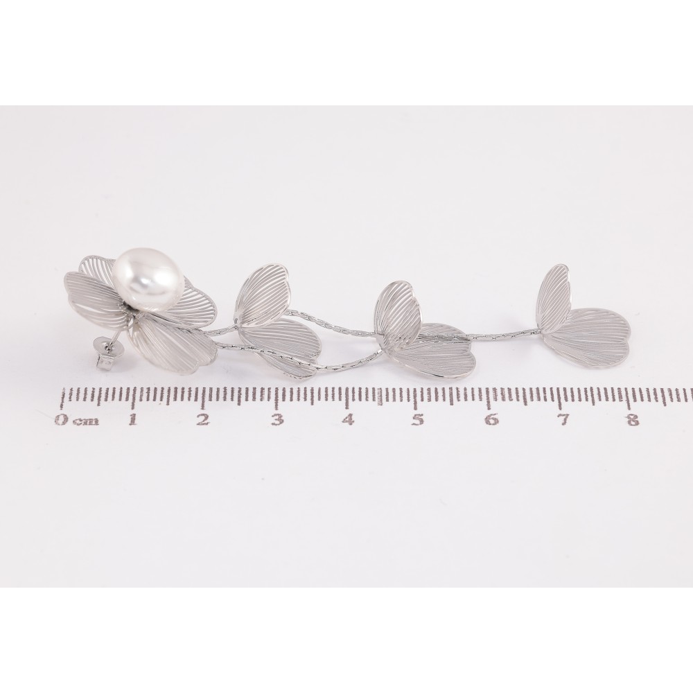 Серьги Нержавеющая сталь пусеты "Цветочные подвески с жемчужинами"