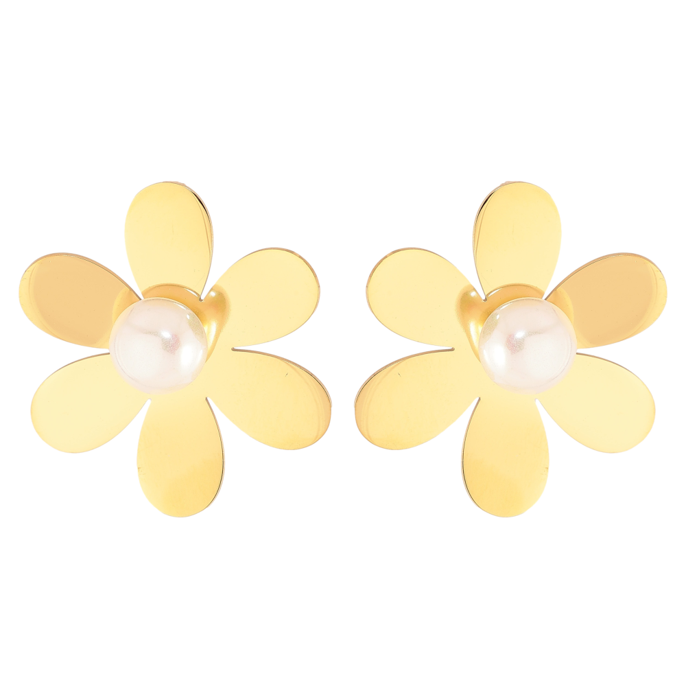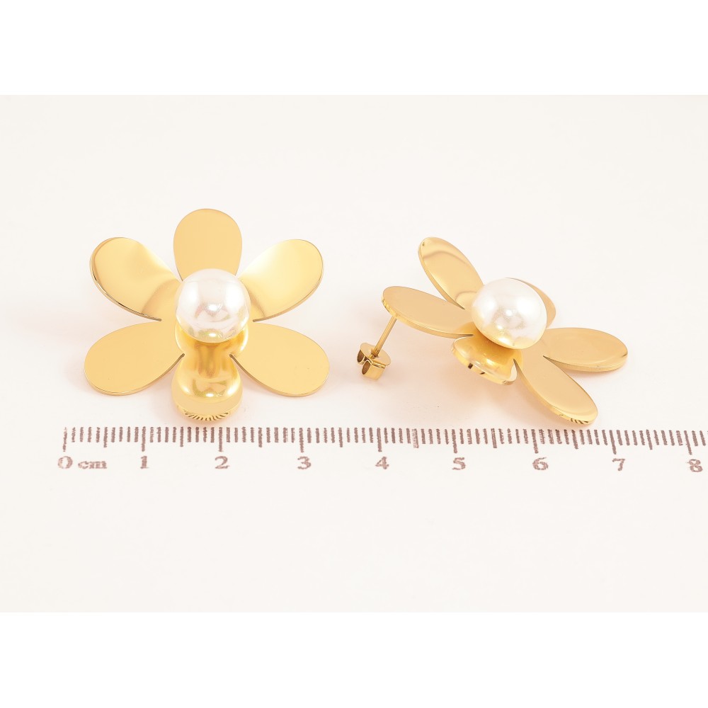 Серьги Нержавеющая сталь пусеты "Цветочки с жемчужинами" фото №1
