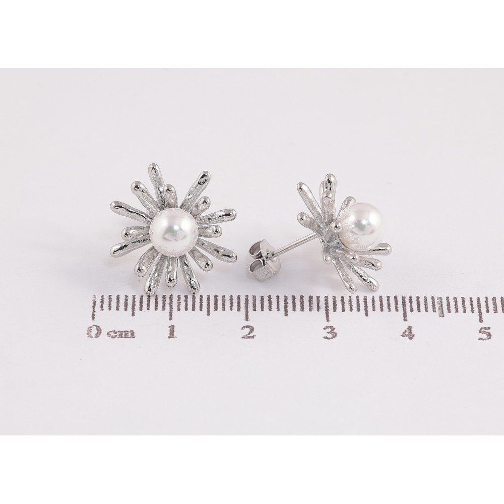 Серьги Нержавеющая сталь пусеты "Цветочки с жемчужинами" фото №2