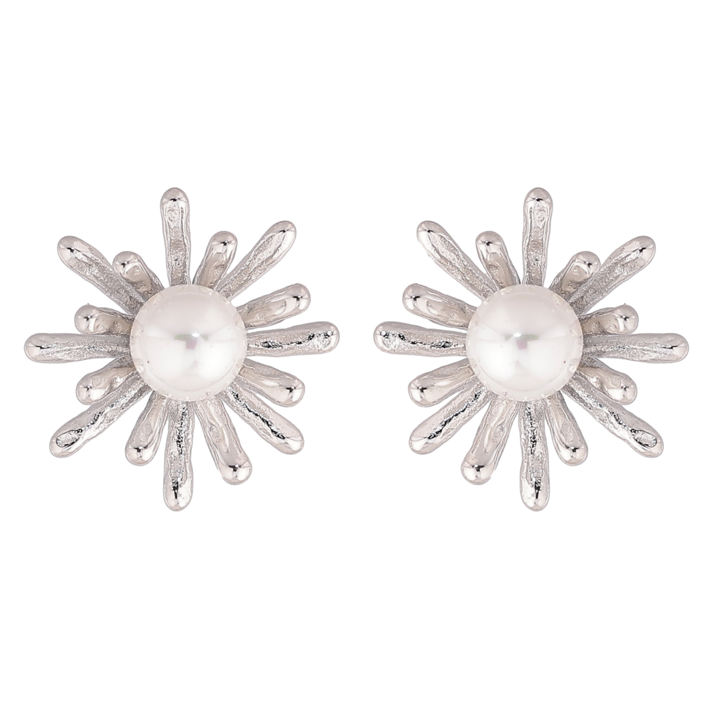 Серьги Нержавеющая сталь пусеты "Цветочки с жемчужинами"