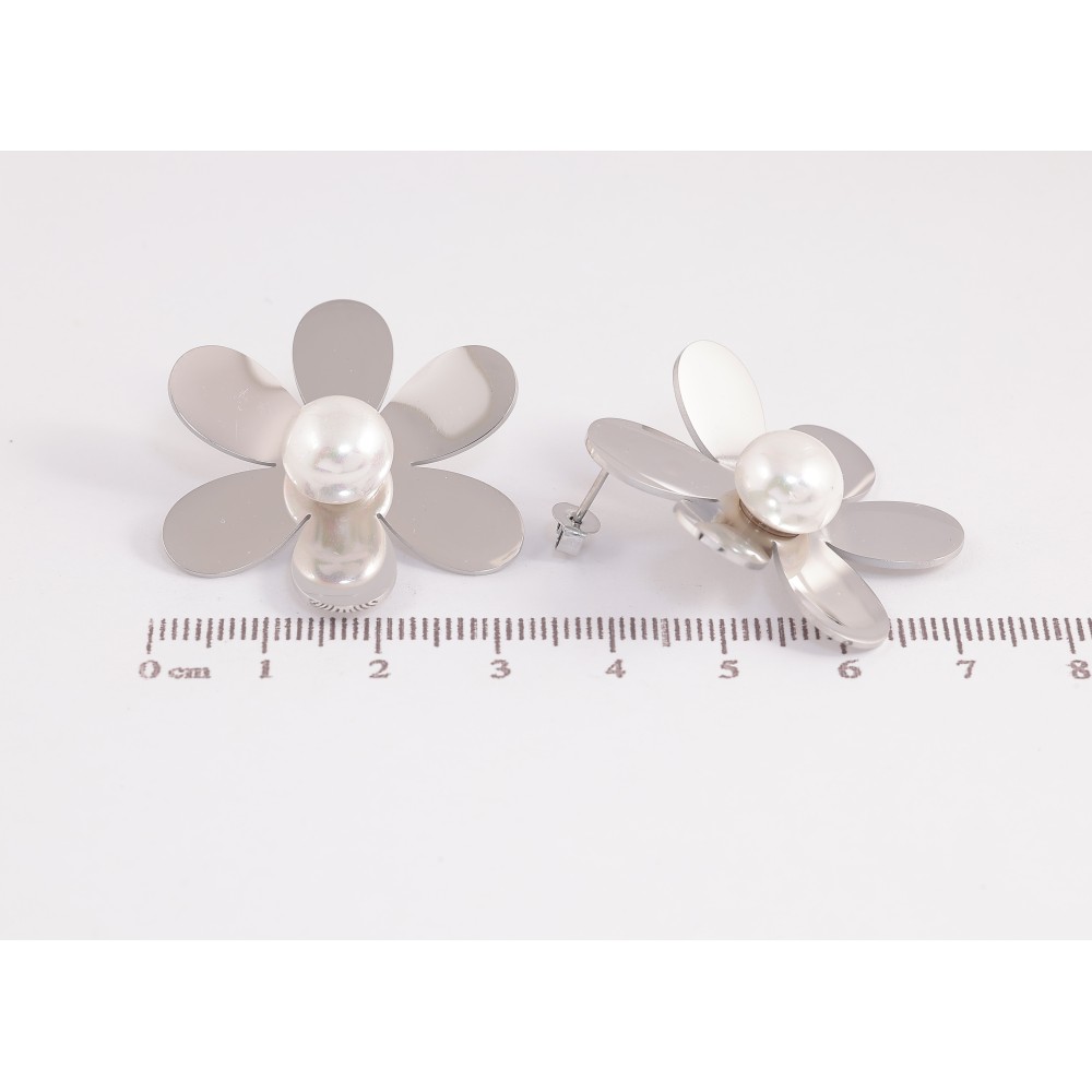 Серьги Нержавеющая сталь пусеты "Цветочки с жемчужинами"