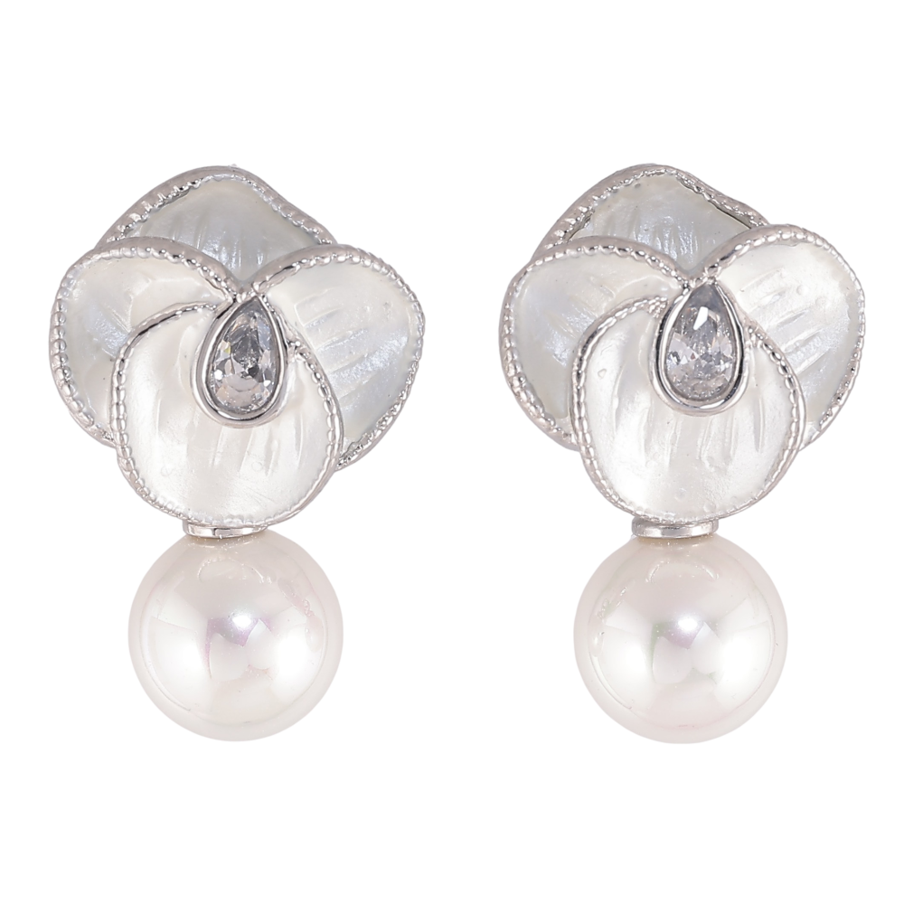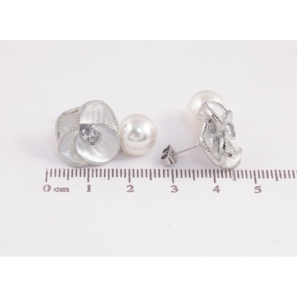 Серьги Нержавеющая сталь пусеты "Цветочки с жемчужинами" фото №1