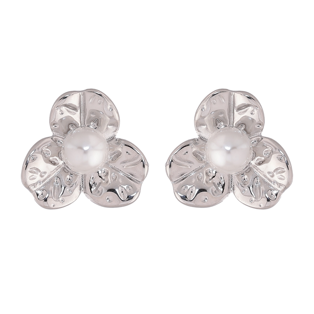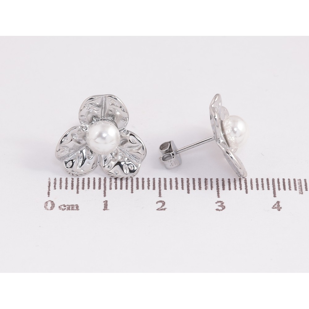 Серьги Нержавеющая сталь пусеты "Цветочки с жемчужинами"