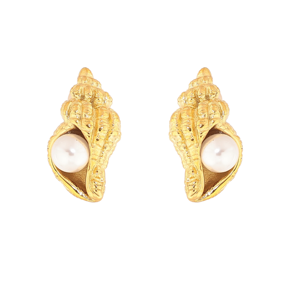 Серьги Нержавеющая сталь пусеты "Ракушки с жемчужинами"