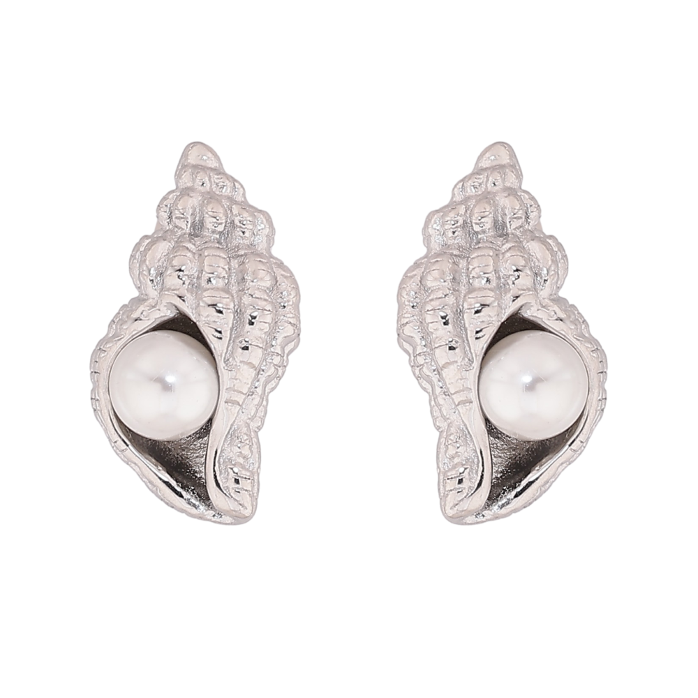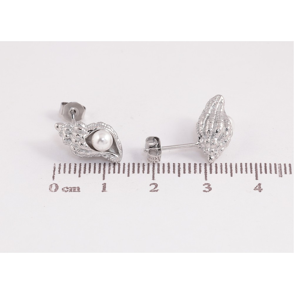 Серьги Нержавеющая сталь пусеты "Ракушки с жемчужинами"