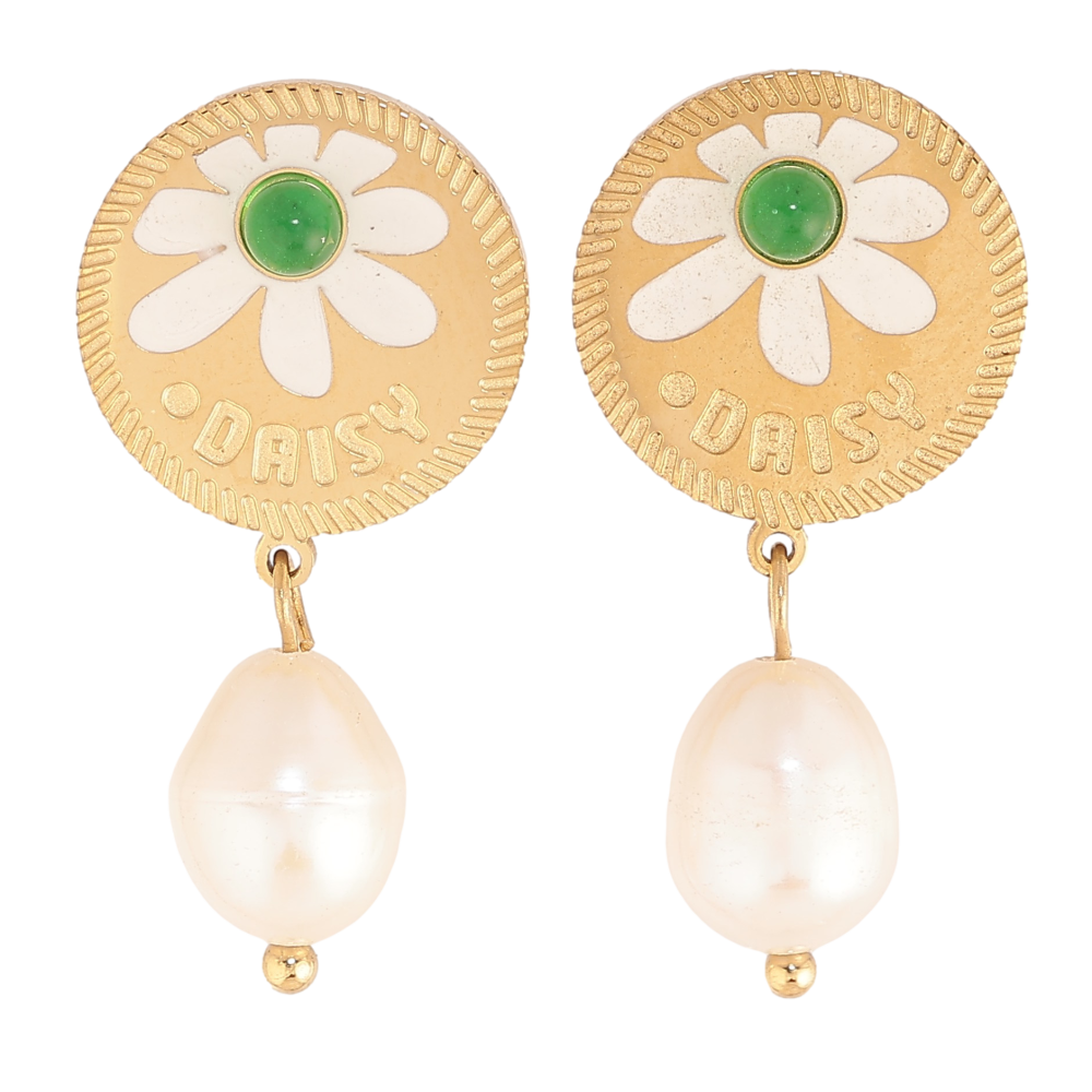 Серьги Нержавеющая сталь пусеты "Жемчужные подвески с цветочным узором"