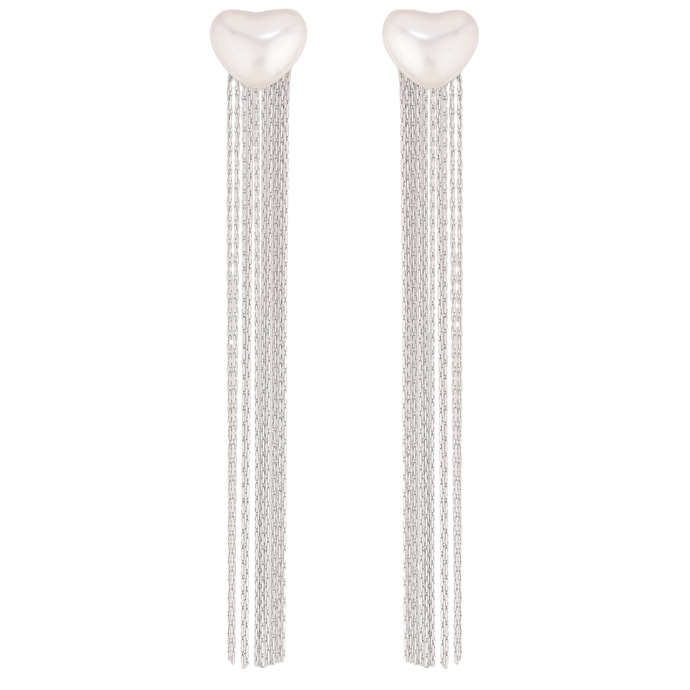 Серьги Нержавеющая сталь пусеты "Жемчужные сердечки с подвесками"