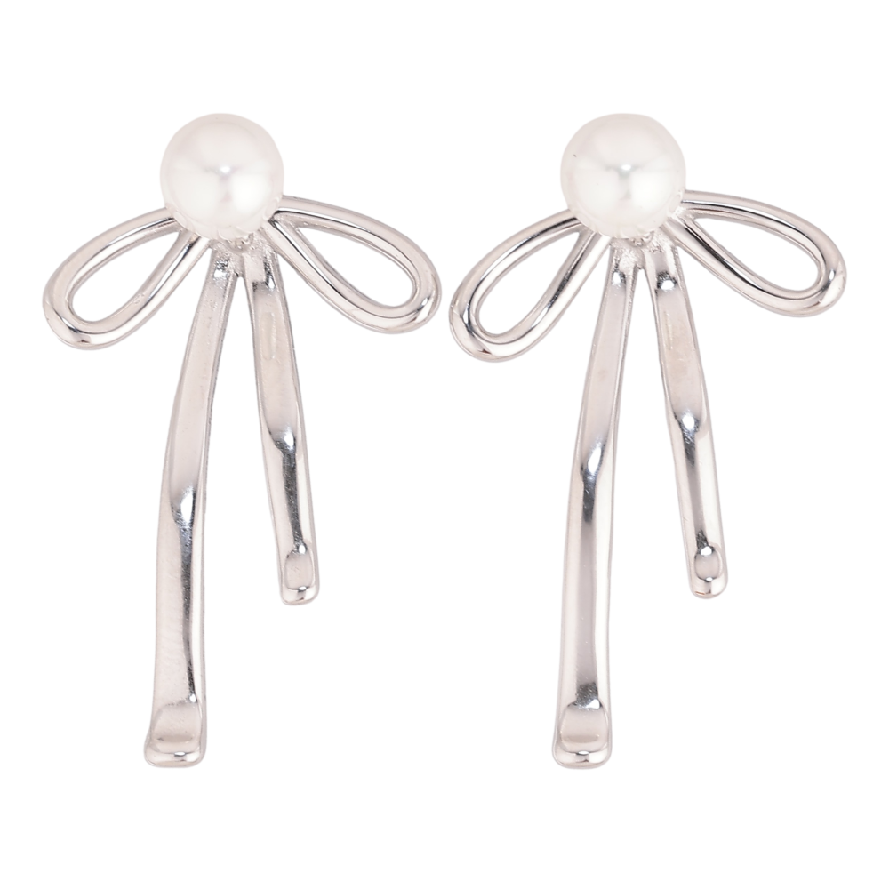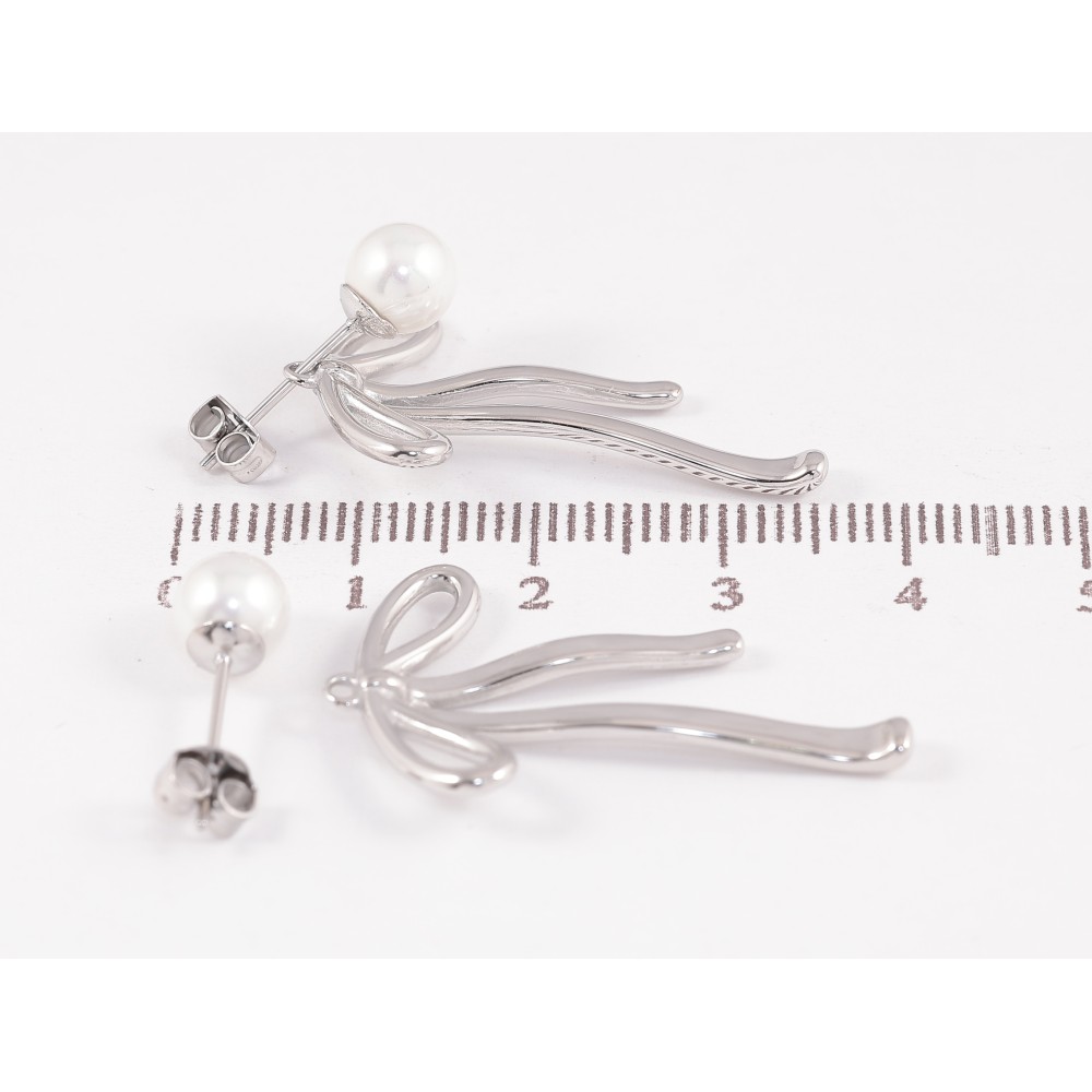 Серьги Нержавеющая сталь пусеты "Жемчужины с бантами" 2 в 1, ø 6мм