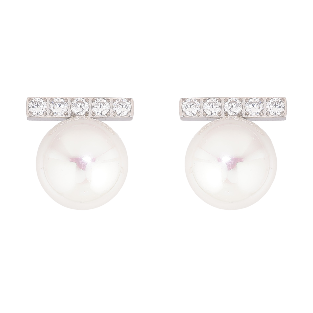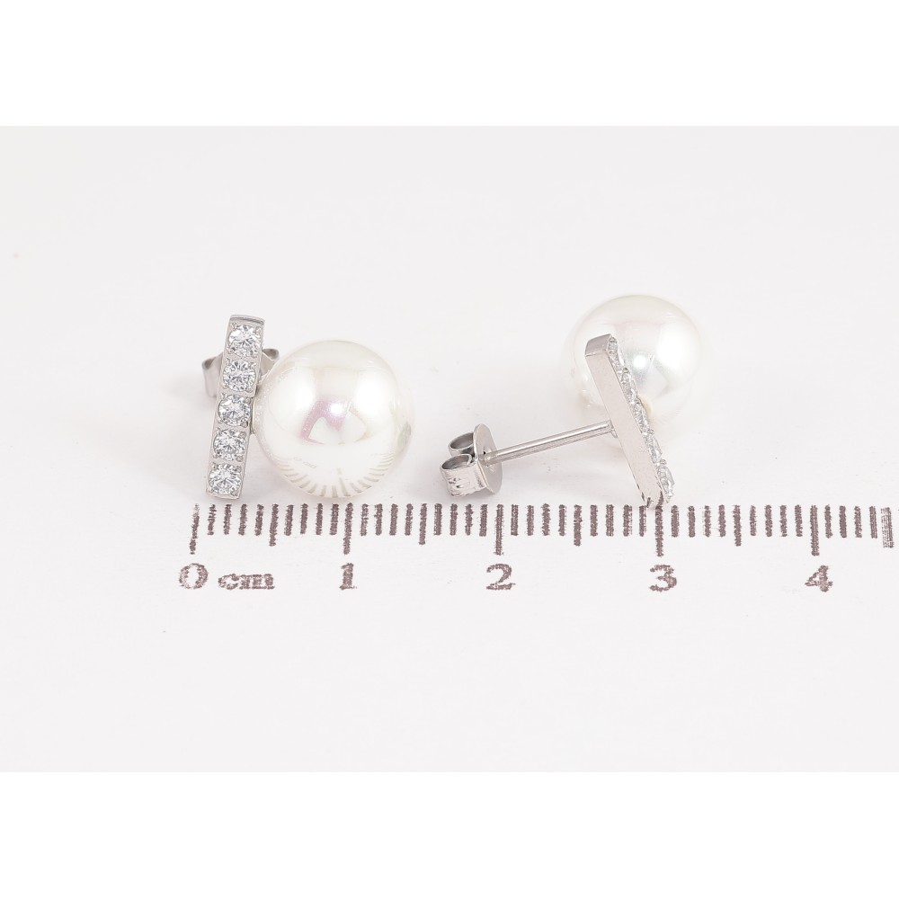 Серьги Нержавеющая сталь пусеты "Жемчужины с кристальными дорожками"