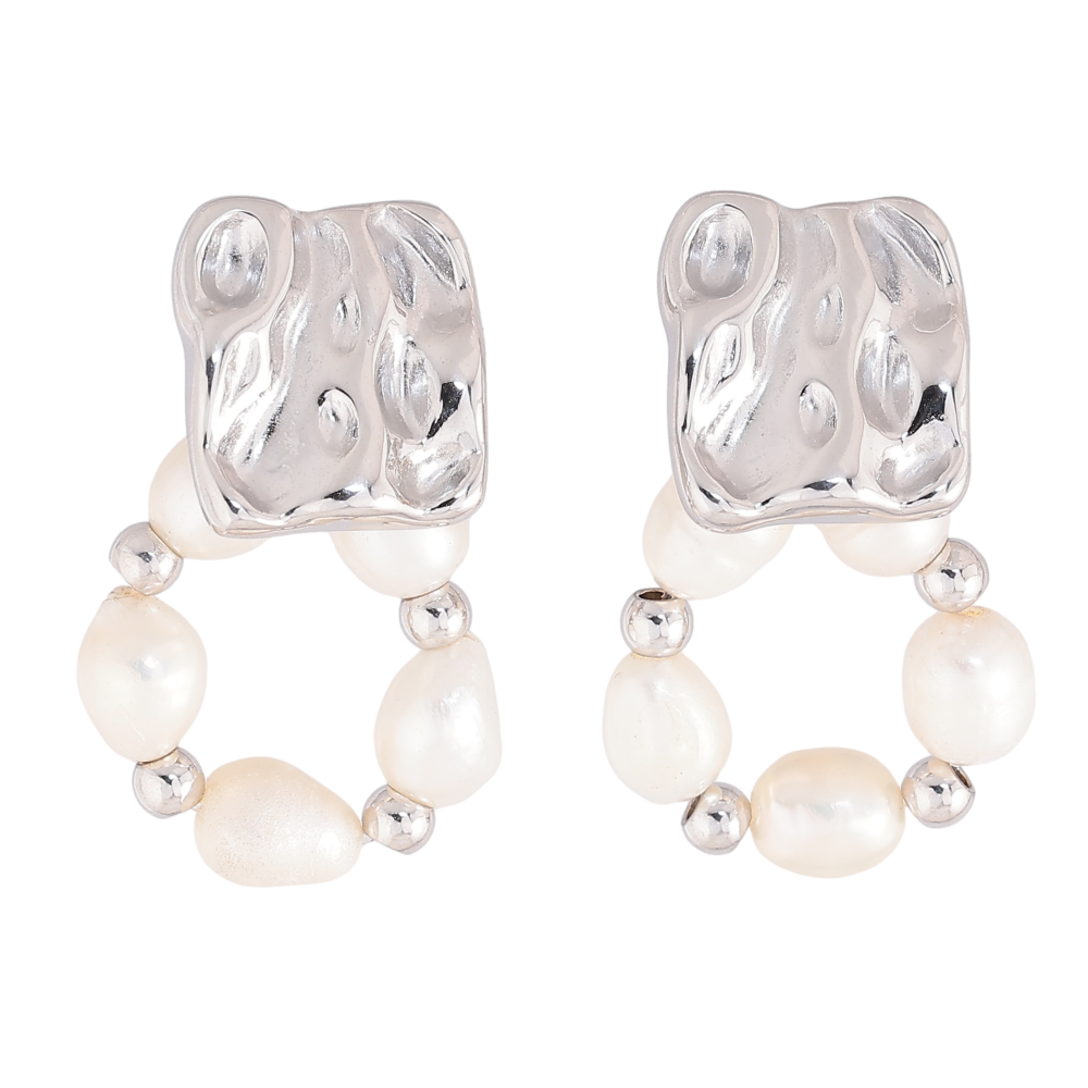 Серьги Нержавеющая сталь пусеты "Подвески с жемчужными бусинами"