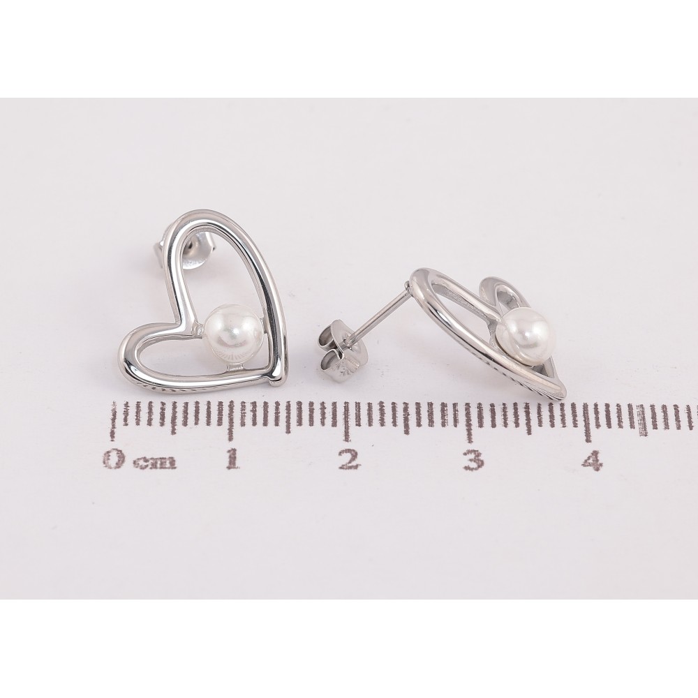 Серьги Нержавеющая сталь пусеты "Сердечки с жемчужинами" фото №2