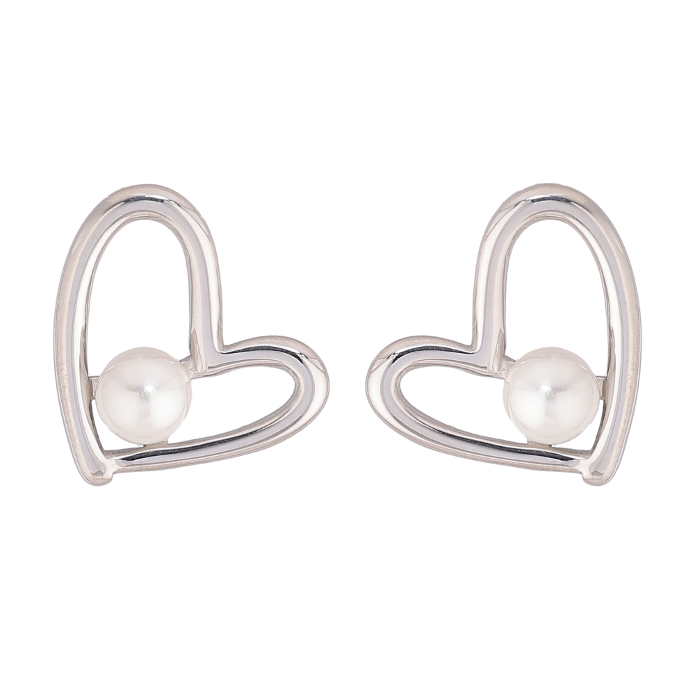 Серьги Нержавеющая сталь пусеты "Сердечки с жемчужинами"