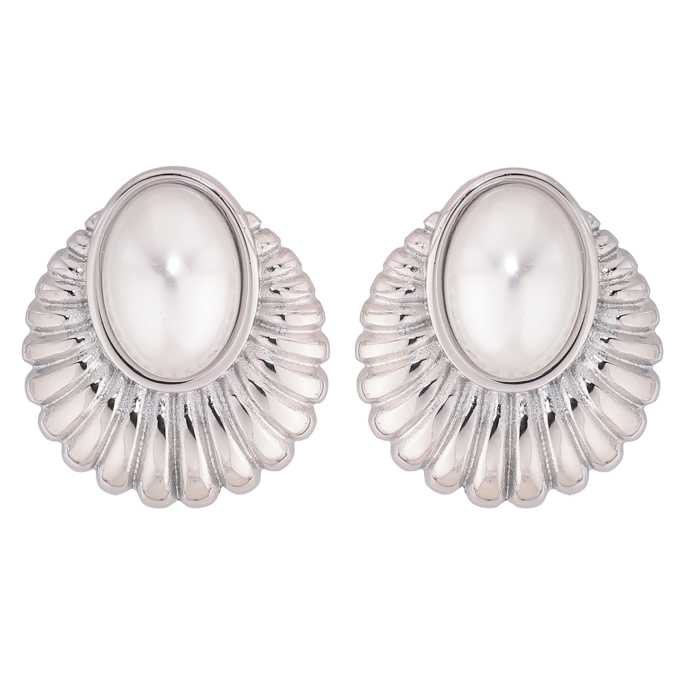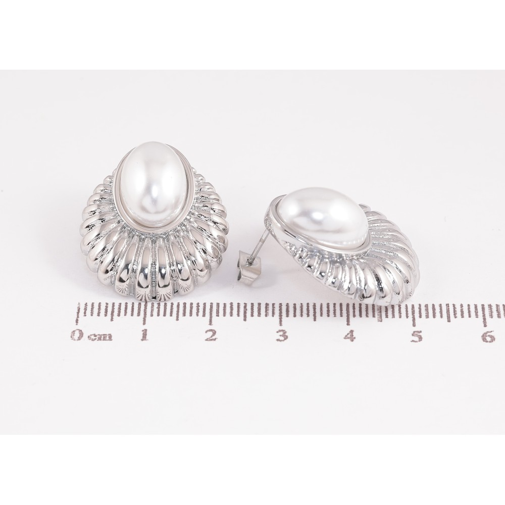Серьги Нержавеющая сталь пусеты "Узор с жемчужными вставками"