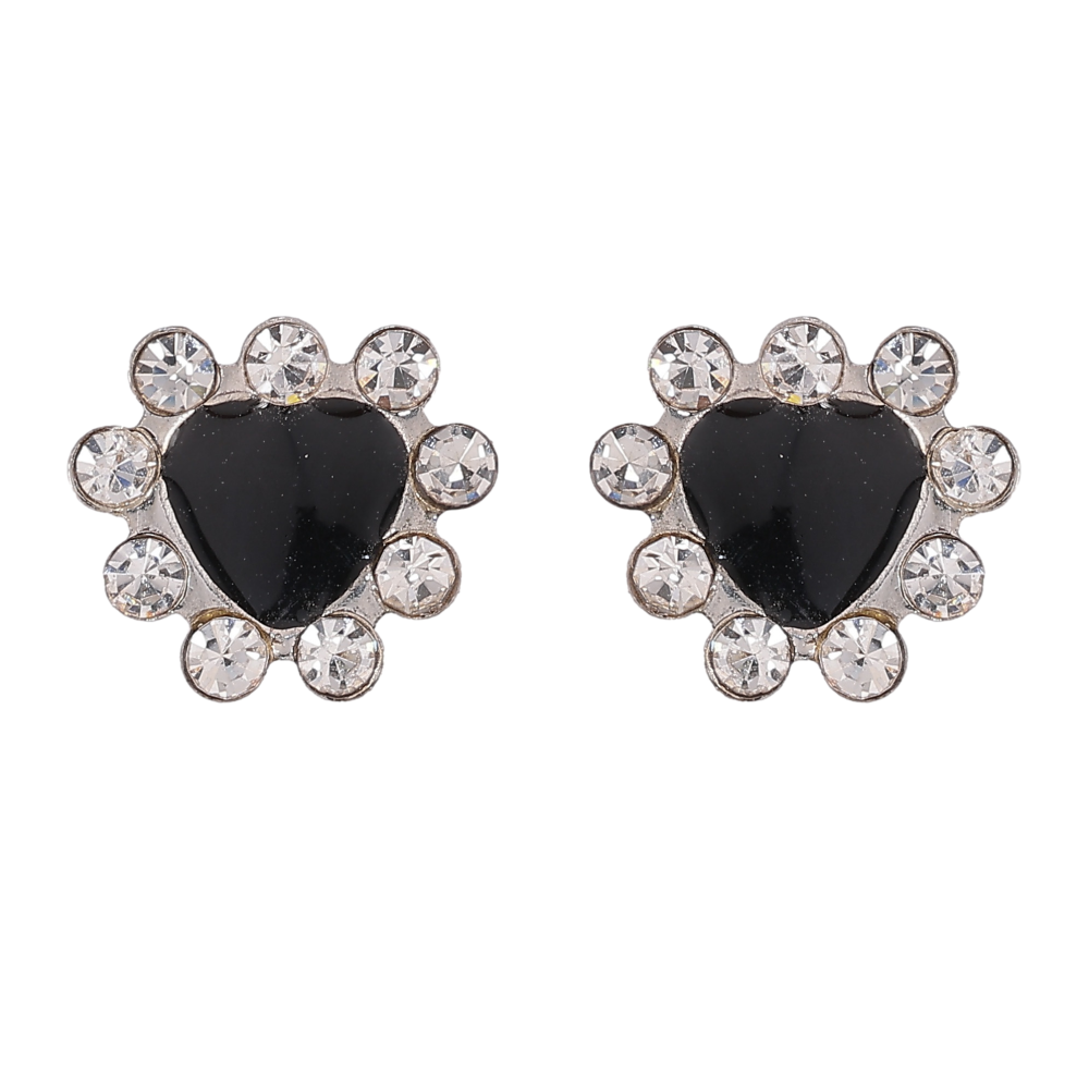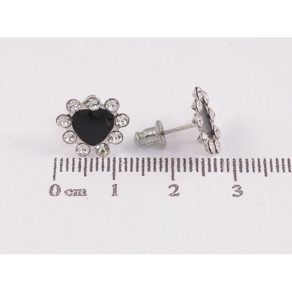 Серьги пусеты "Черные сердечки со стразами"