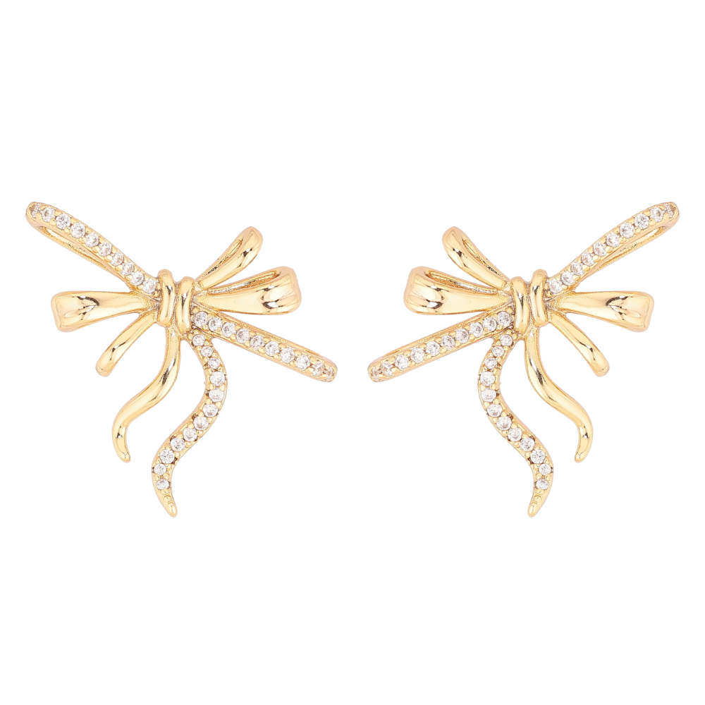 Серьги Xuping цвет Позолота 14K пусеты "Декоративные банты с кристаллами"