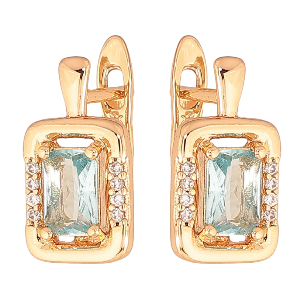 Серьги Xuping цвет позолота 18K английский замок узор с голубыми кристаллами