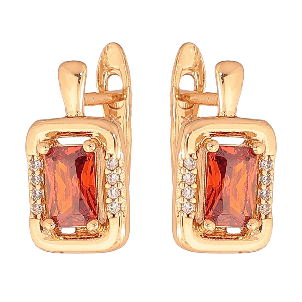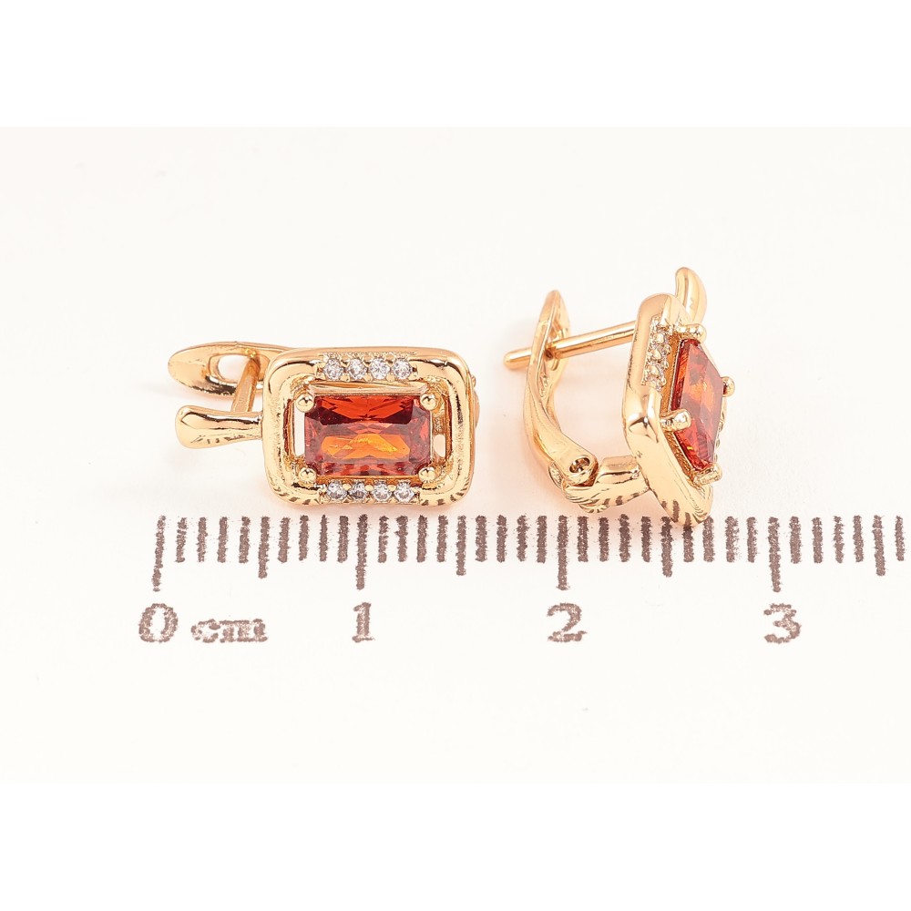 Серьги Xuping цвет позолота 18K английский замок узор с красными кристаллами