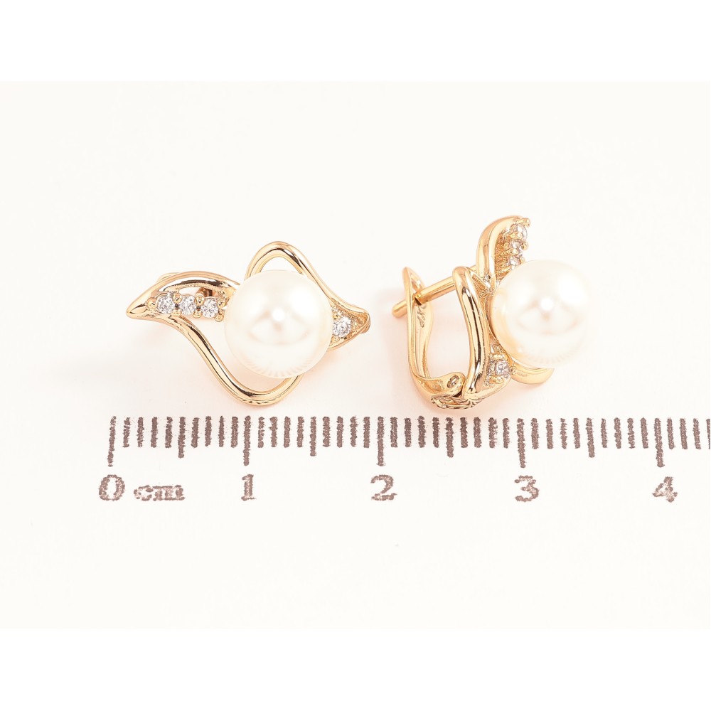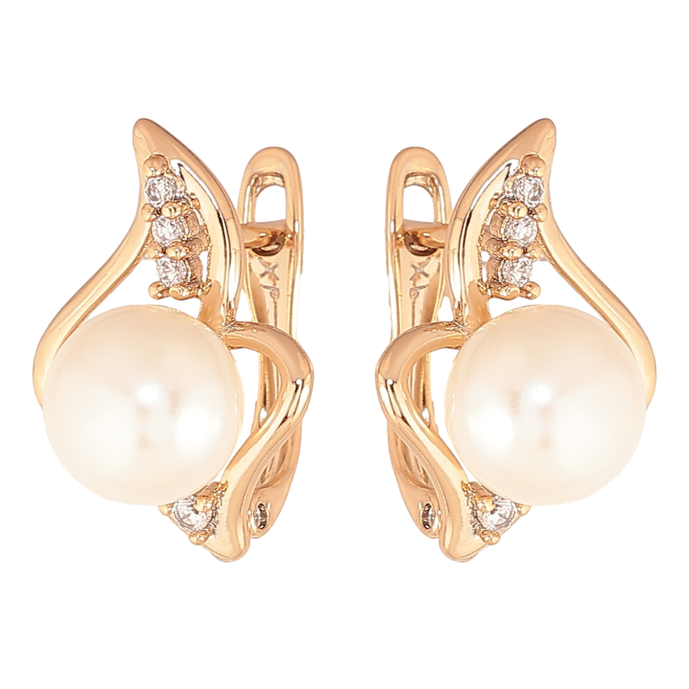 Серьги Xuping цвет позолота 18K английский замок узор с кристаллами и жемчужинами