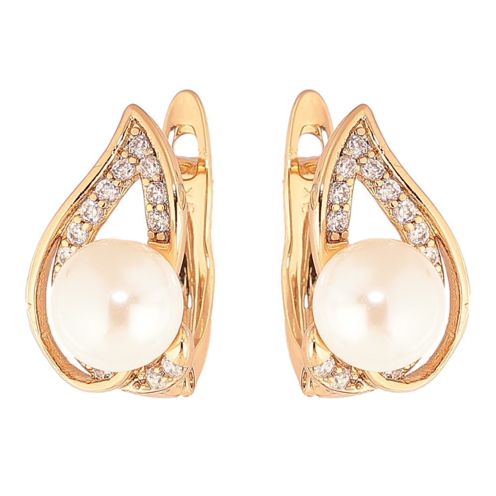 Серьги Xuping цвет позолота 18K английский замок узор с кристаллами и жемчужинами фото №1