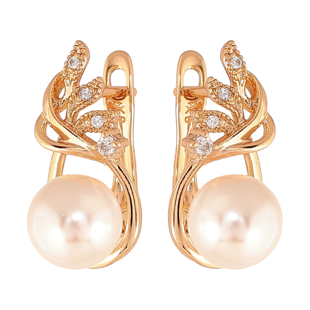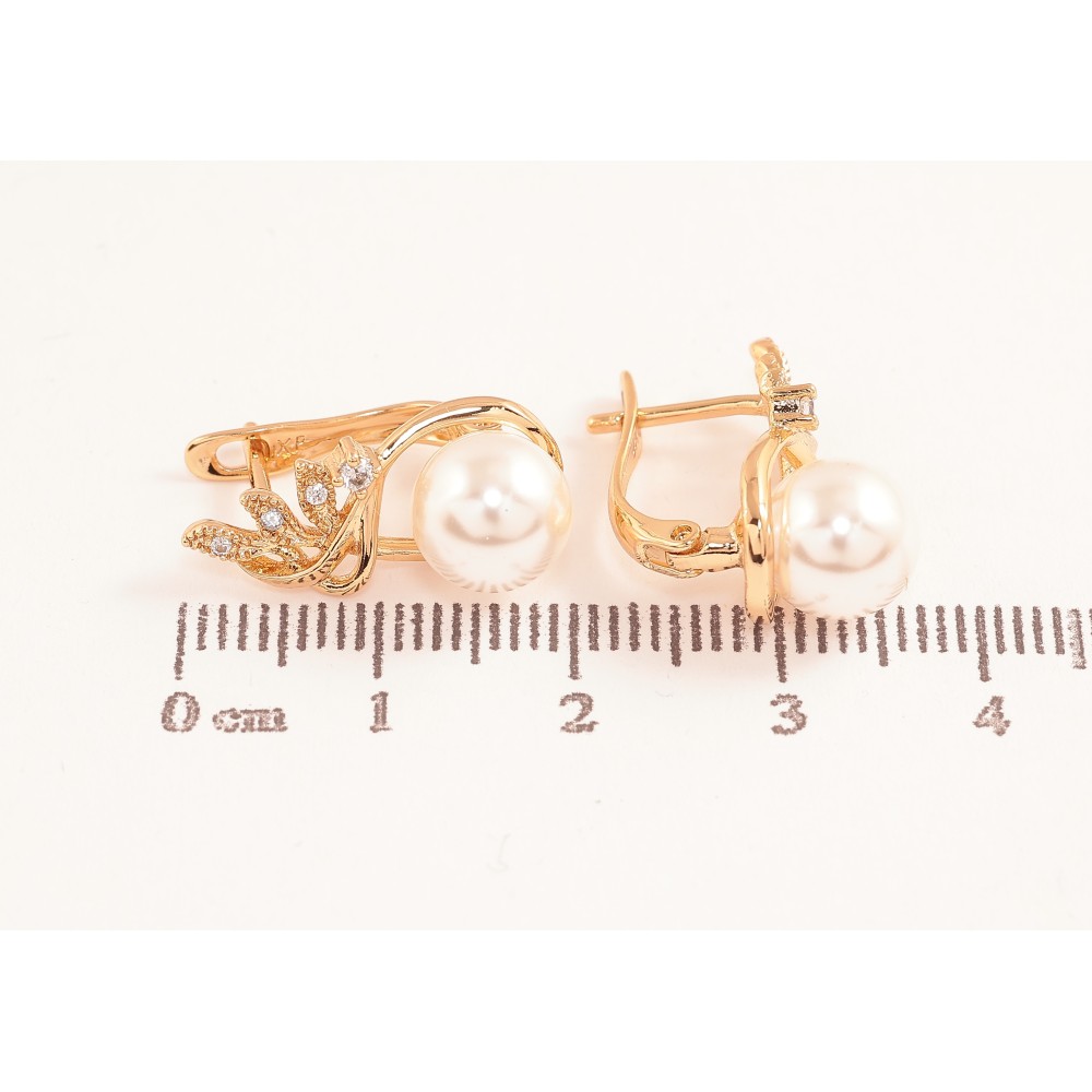 Серьги Xuping цвет позолота 18K английский замок узор с кристаллами и жемчужинами фото №1