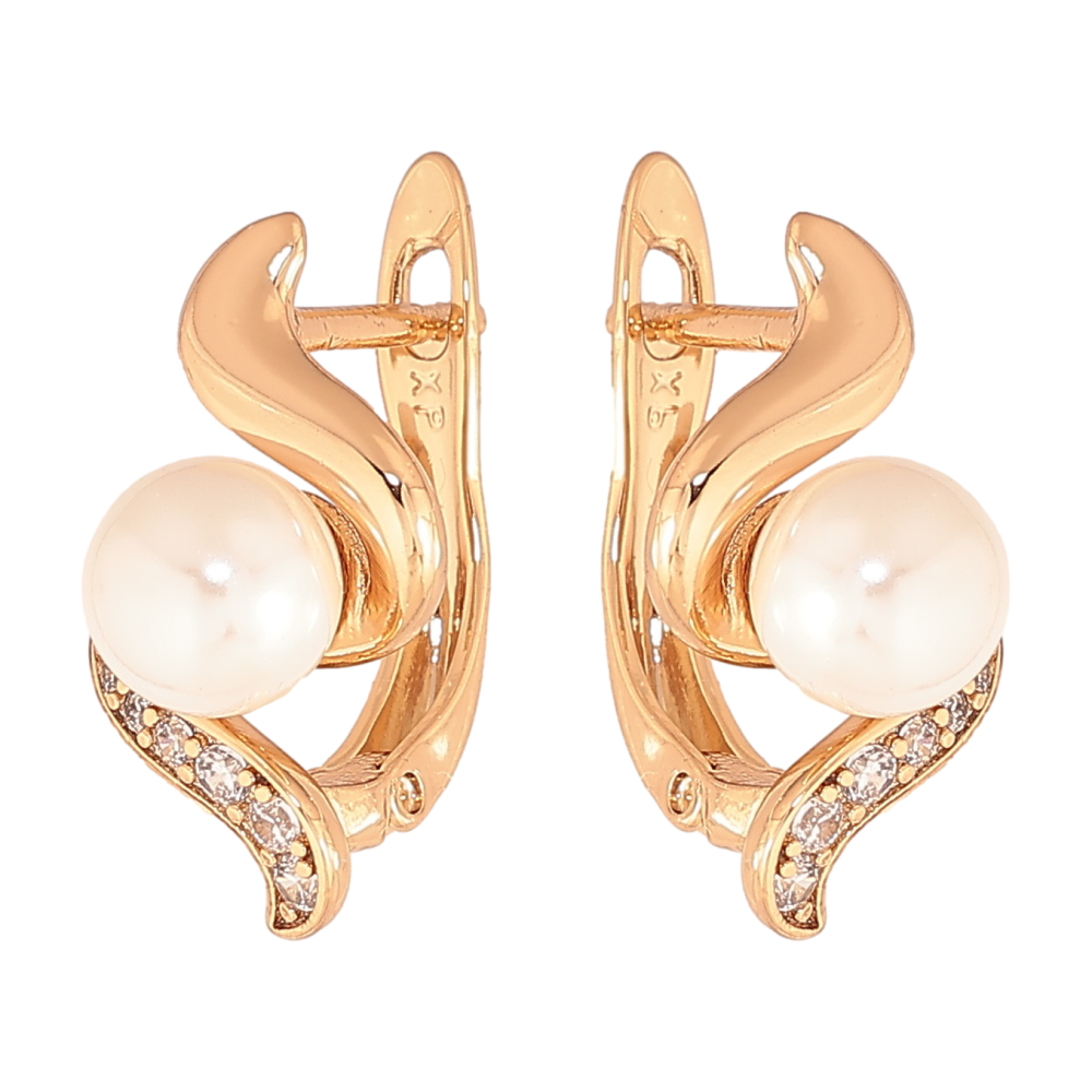 Серьги Xuping цвет позолота 18K английский замок узор с жемчужинами