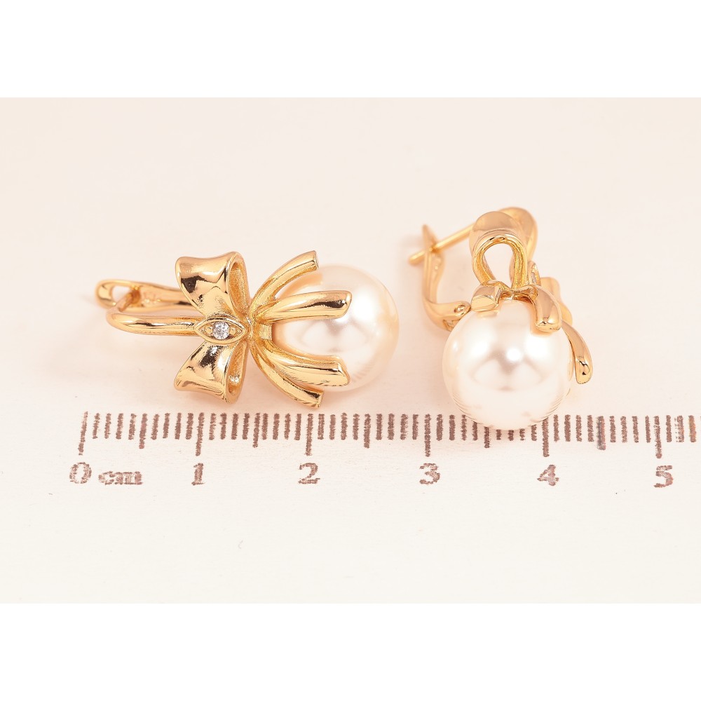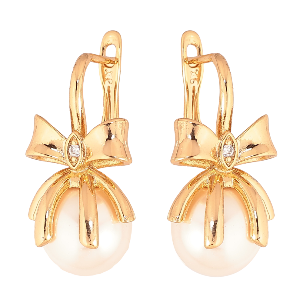Серьги Xuping цвет Позолота 18К английский замок "Бантики с жемчужинами"