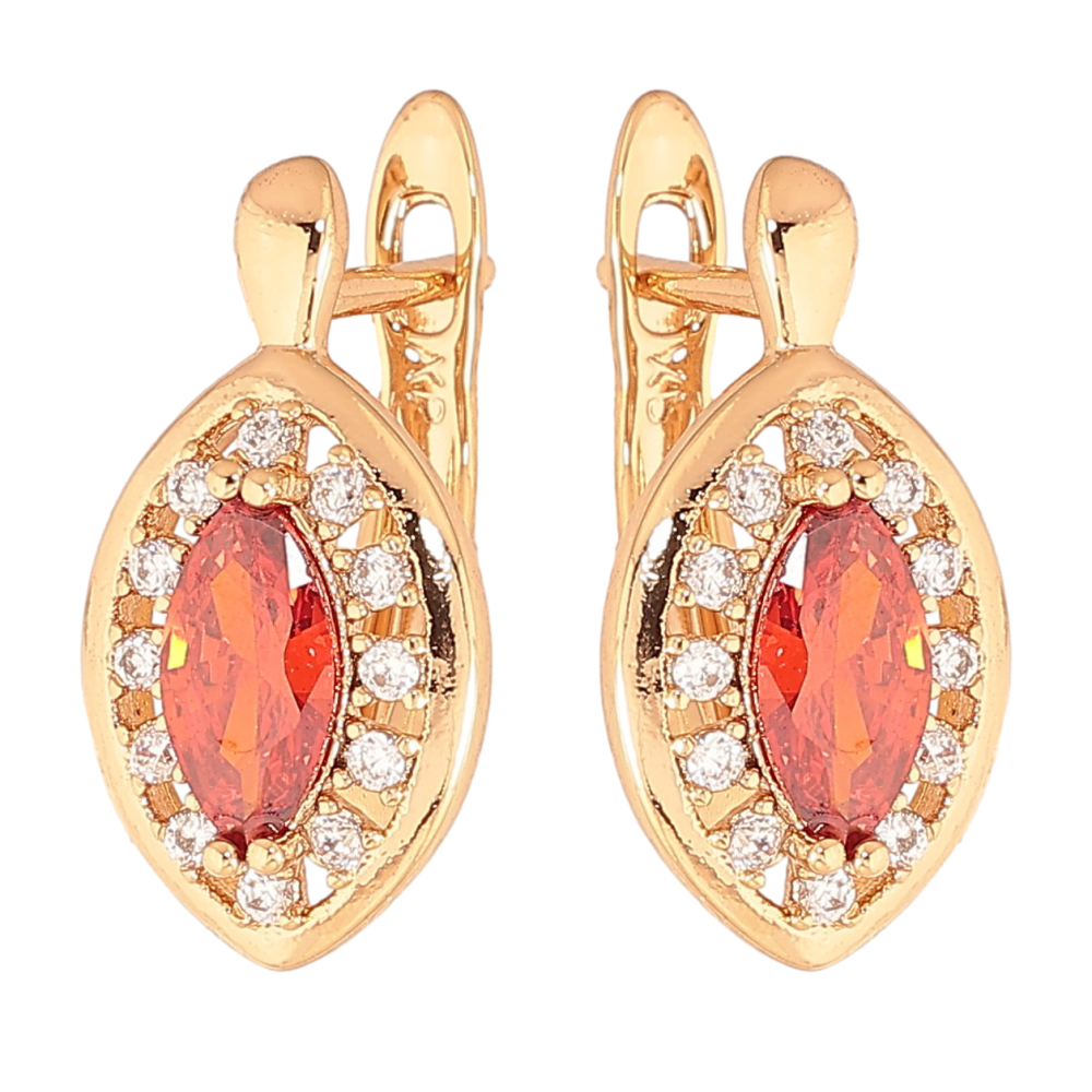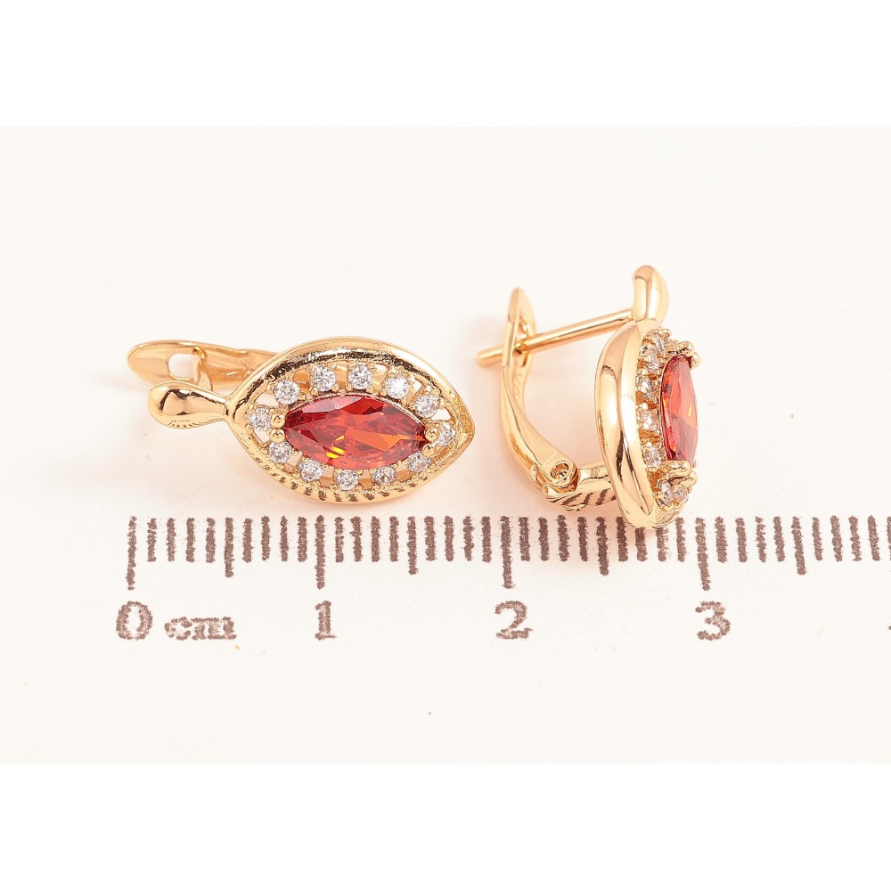 Серьги Xuping цвет Позолота 18K английский замок "Красные кристаллы в обрамлении"