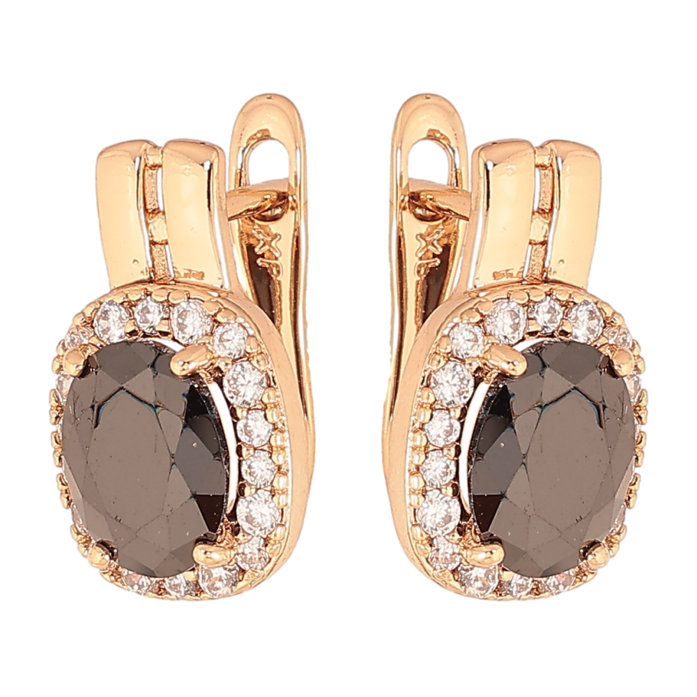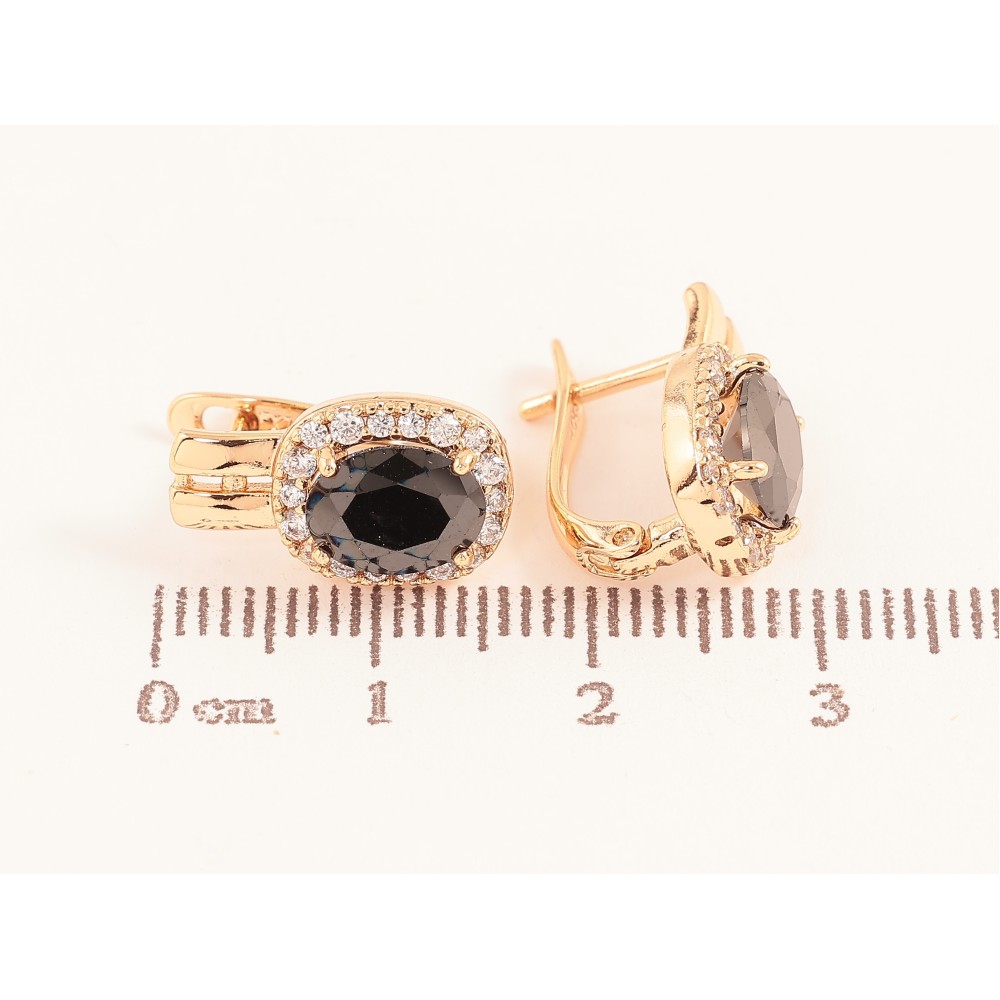 Серьги Xuping цвет Позолота 18K английский замок "Черные кристаллы в обрамлении"
