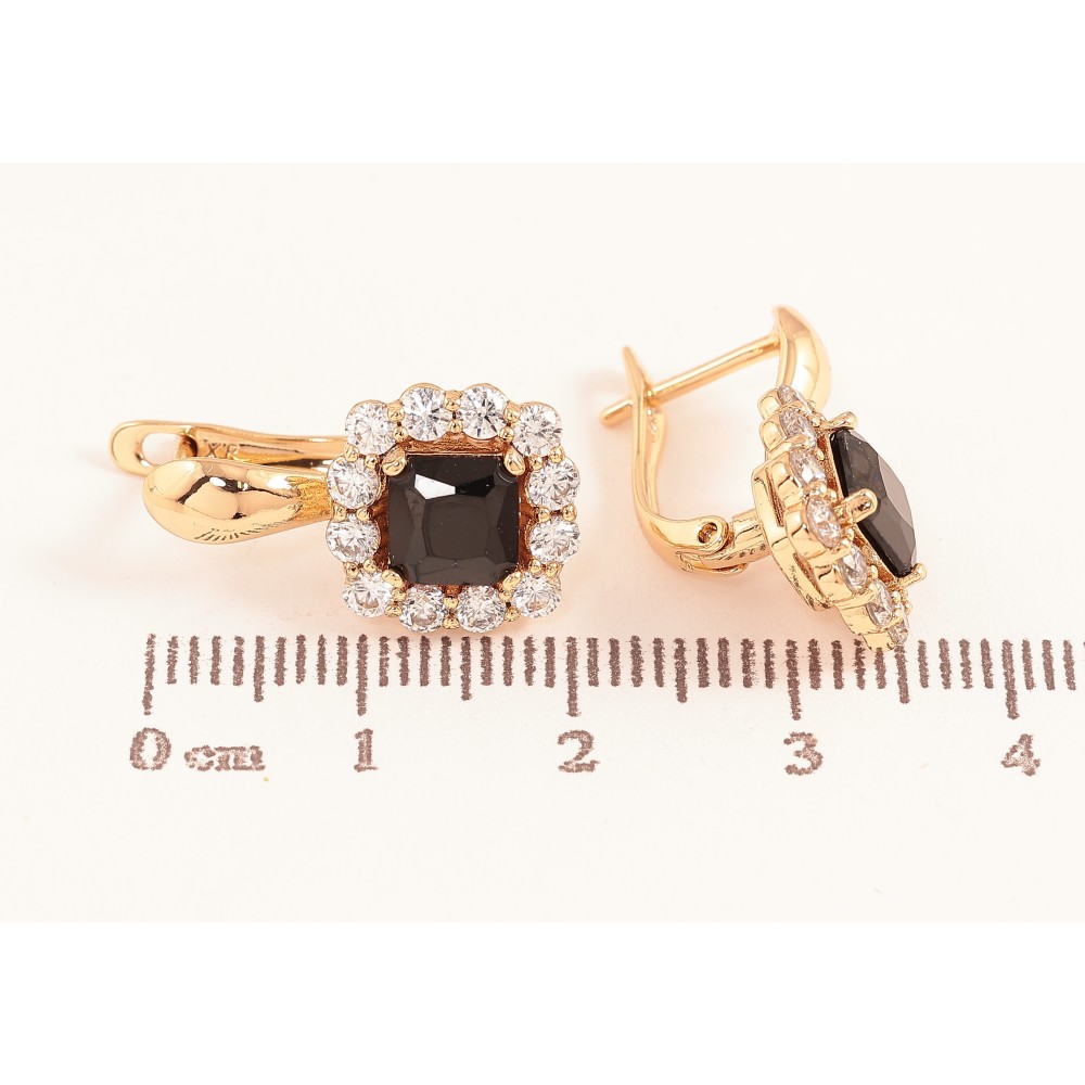 Серьги Xuping цвет Позолота 18K английский замок "Черные кристаллы в обрамлении" фото №1