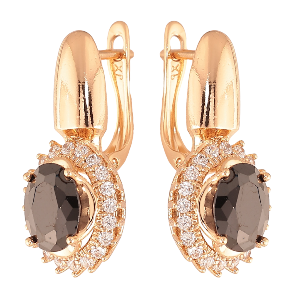 Серьги Xuping цвет Позолота 18K английский замок "Черные кристаллы в обрамлении"