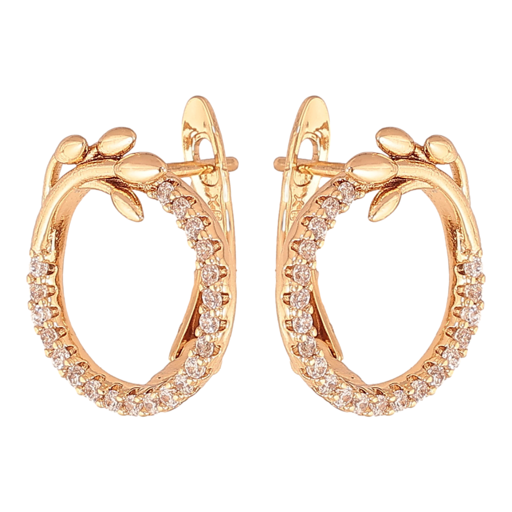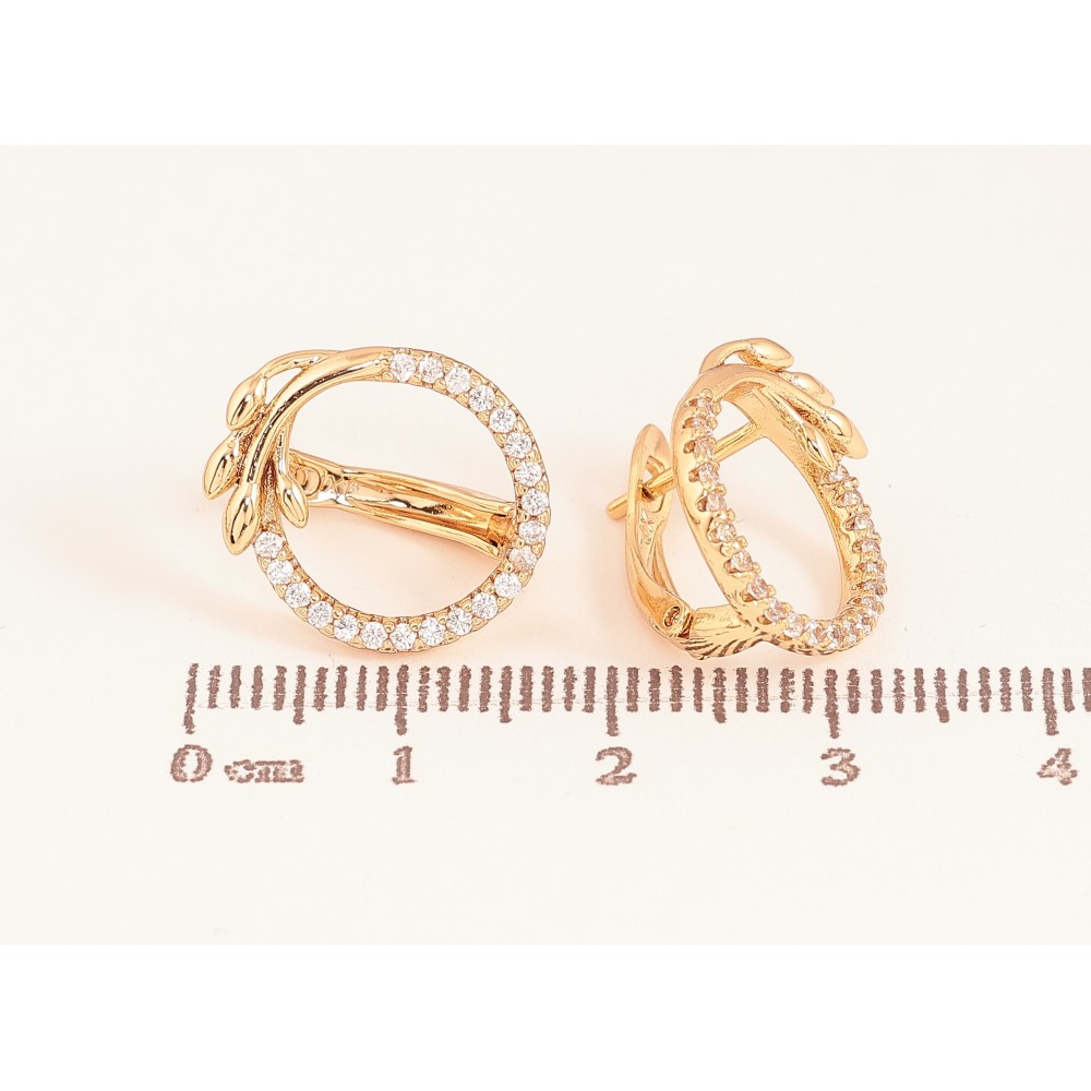 Серьги Xuping цвет Позолота 18К английский замок "Колечки с веточками и кристаллами"