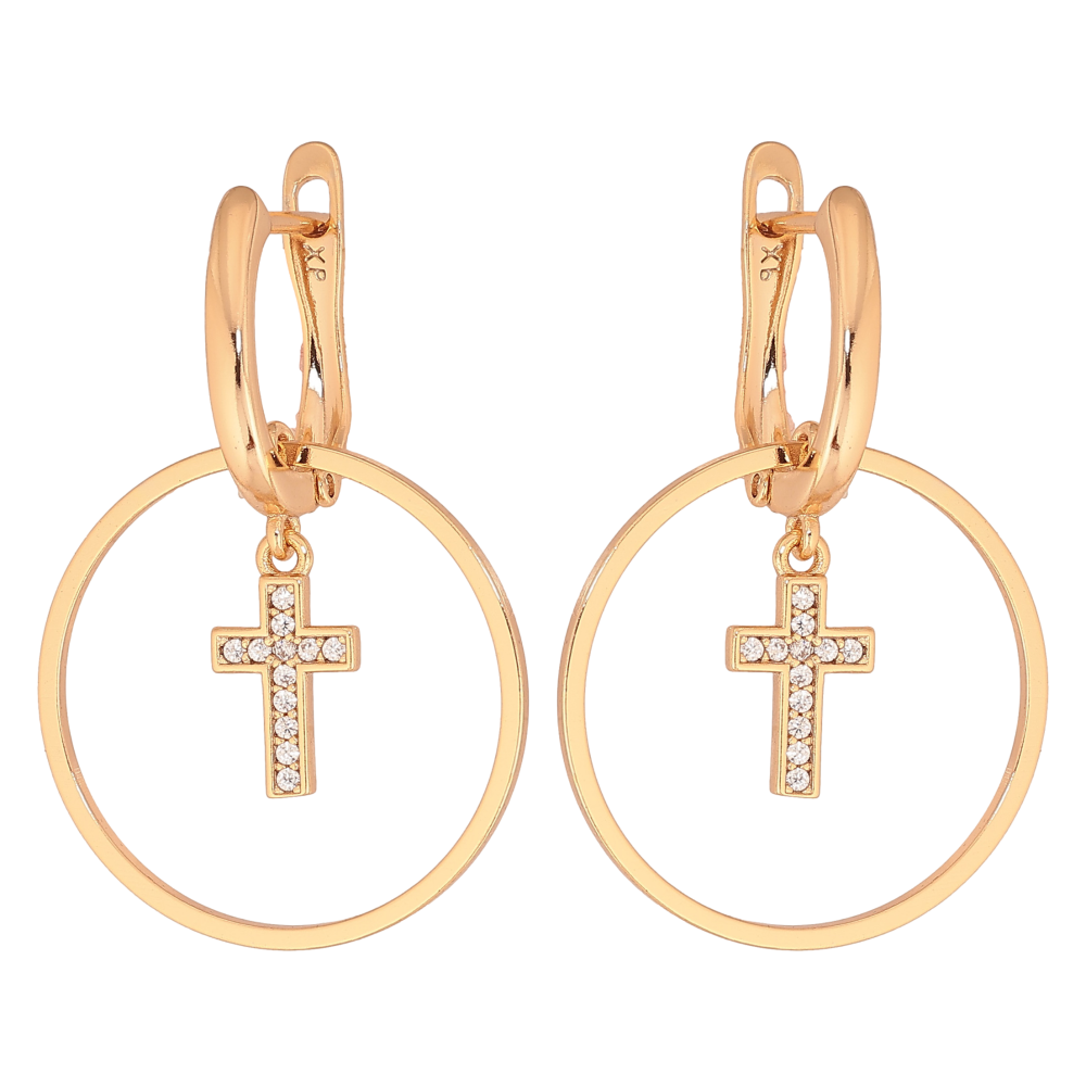Серьги Xuping цвет Позолота 18К английский замок "Круглые подвески с крестиками"