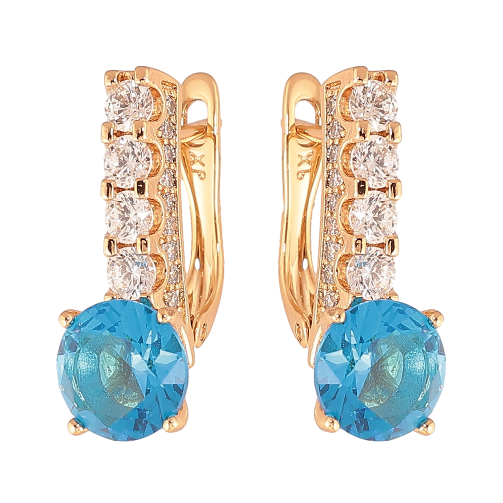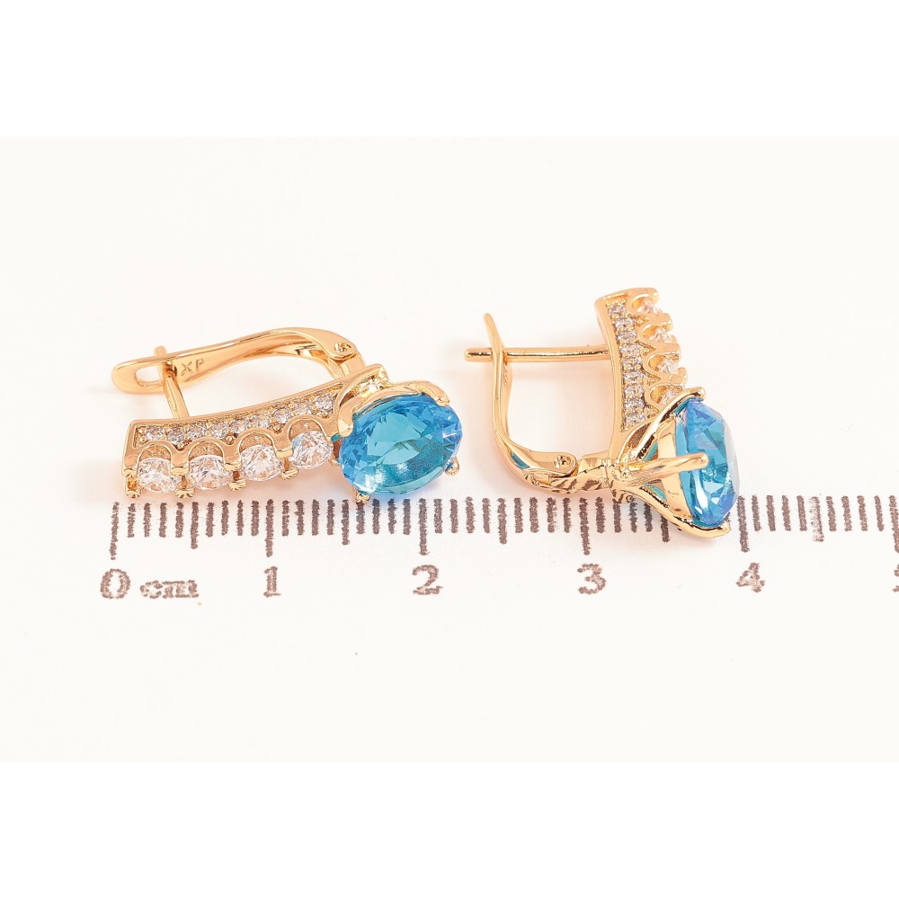 Серьги Xuping цвет Позолота 18K английский замок "Кристальные дорожки с голубыми кристаллами"