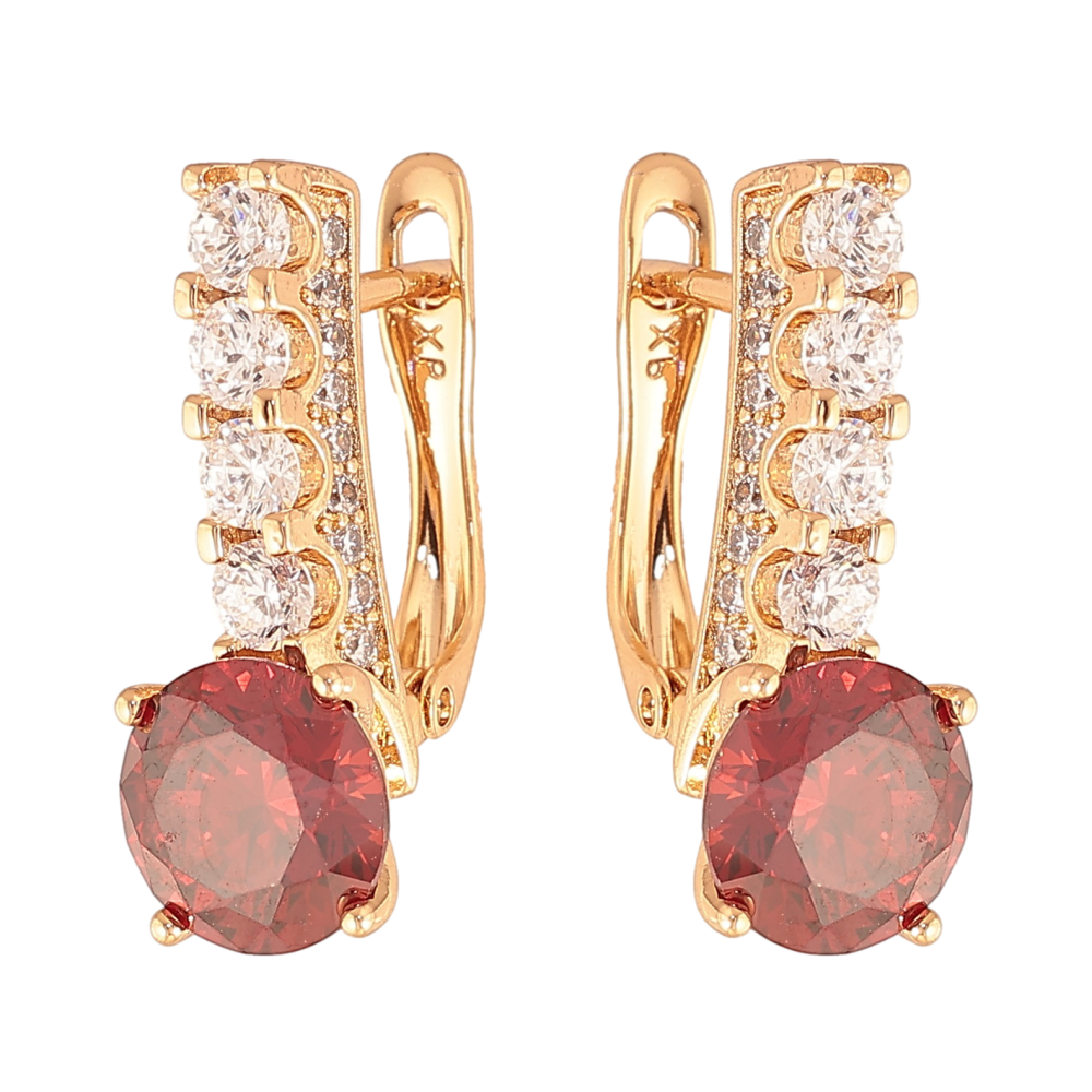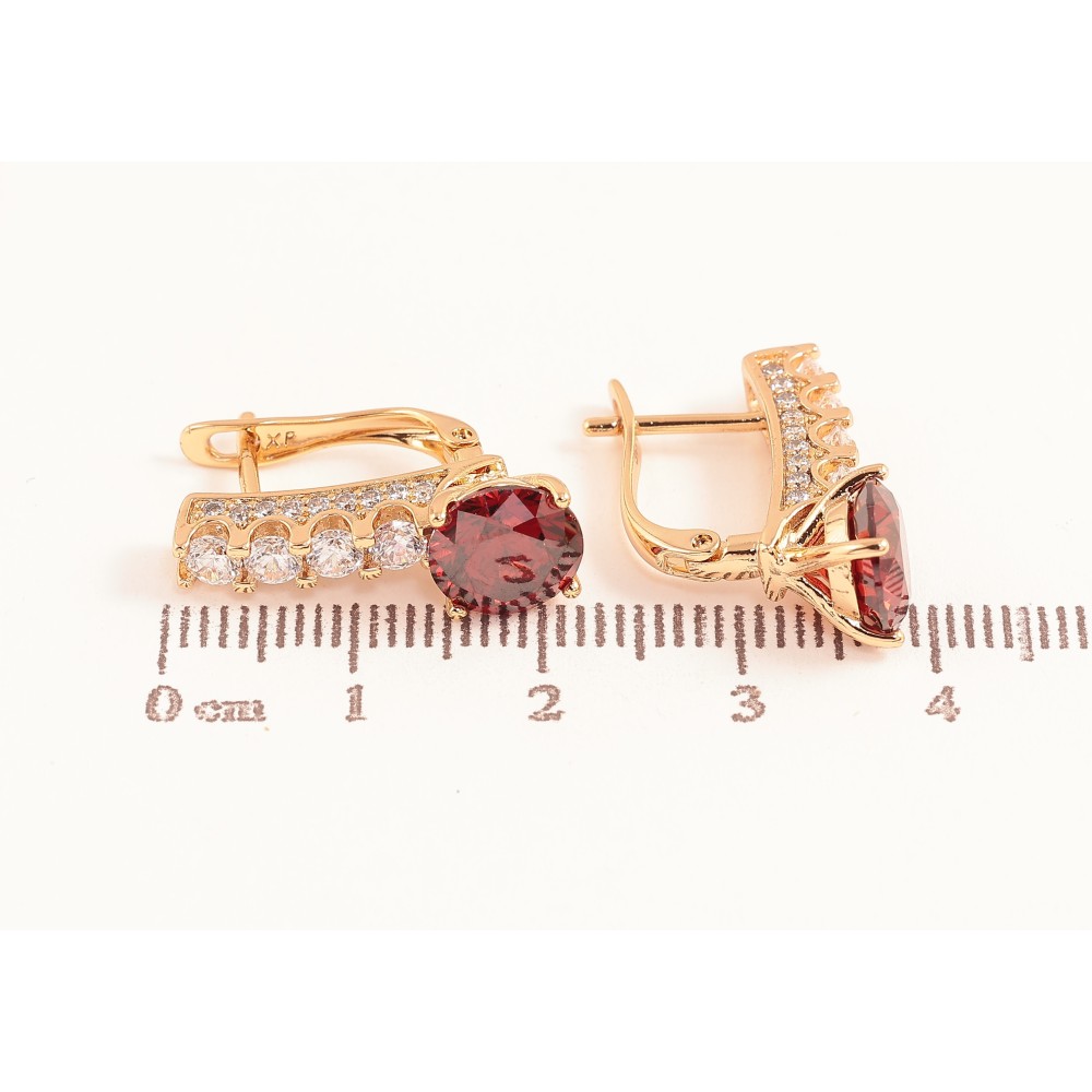 Серьги Xuping цвет Позолота 18K английский замок "Кристальные дорожки с красными кристаллами"