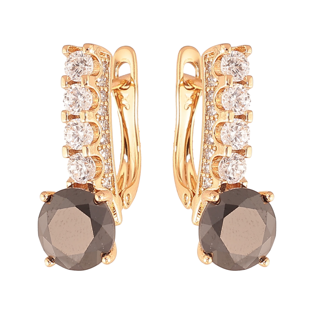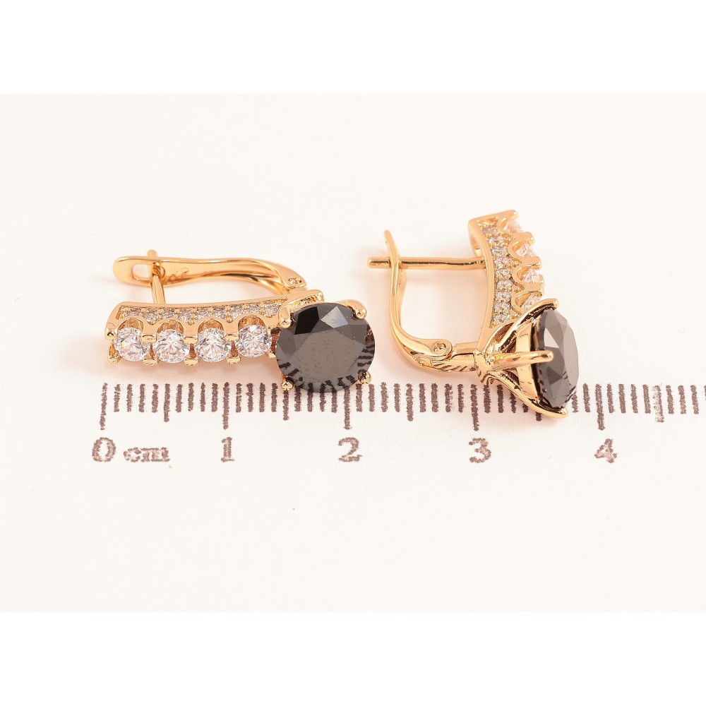 Серьги Xuping цвет Позолота 18K английский замок "Кристальные дорожки с черными кристаллами"