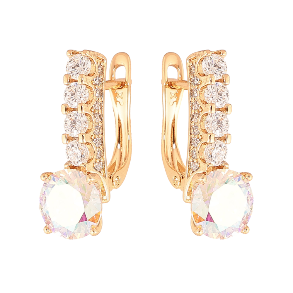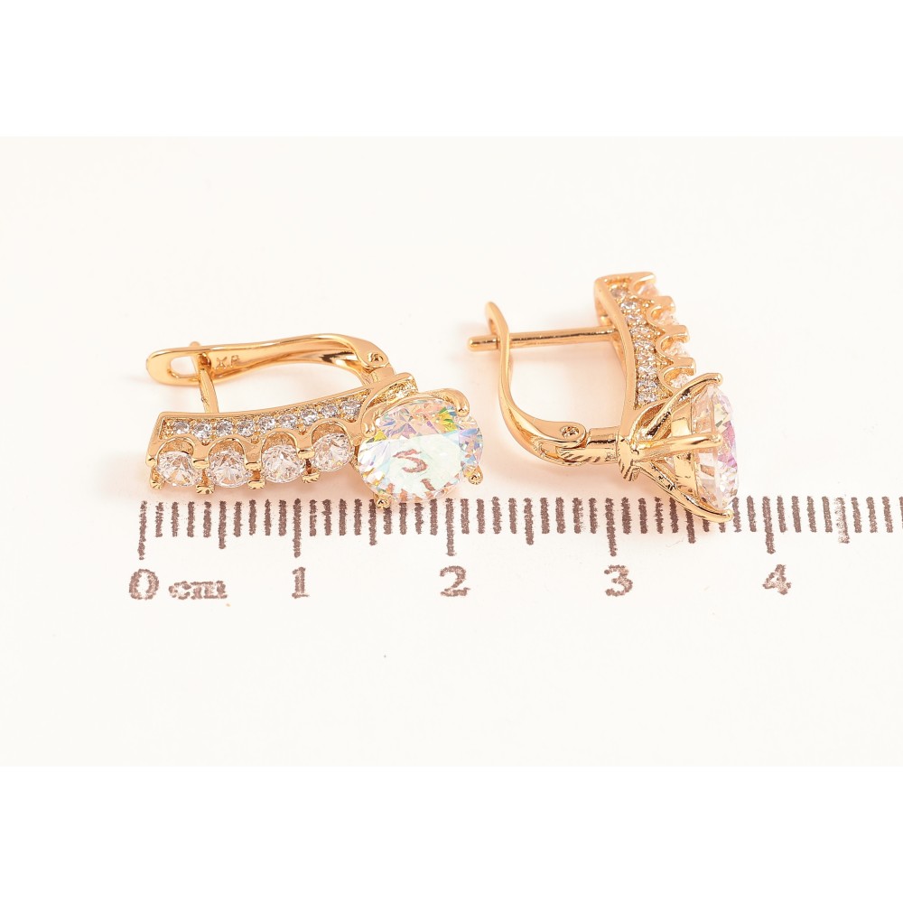 Серьги Xuping цвет Позолота 18K английский замок "Кристальные дорожки с радужными кристаллами"