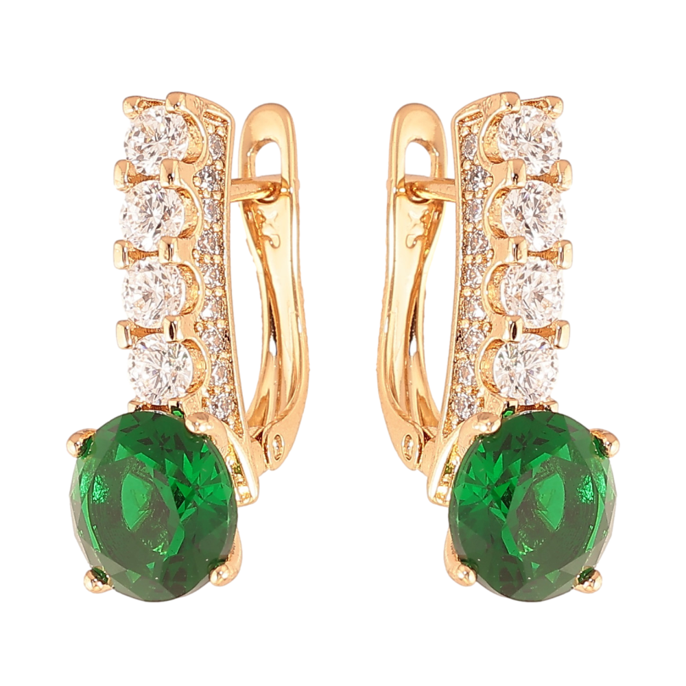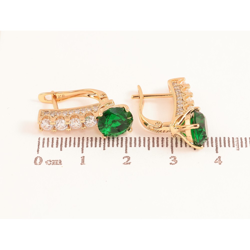 Серьги Xuping цвет Позолота 18K английский замок "Кристальные дорожки с зелеными кристаллами"