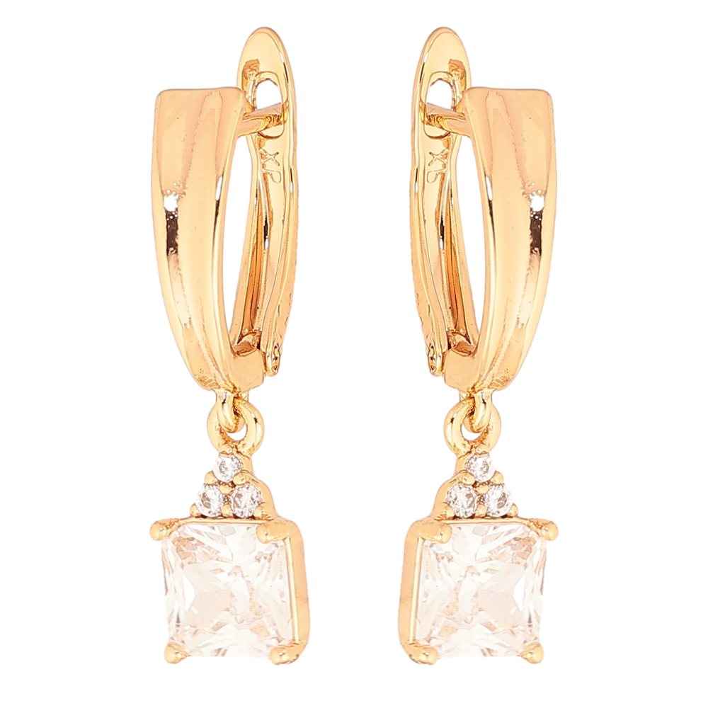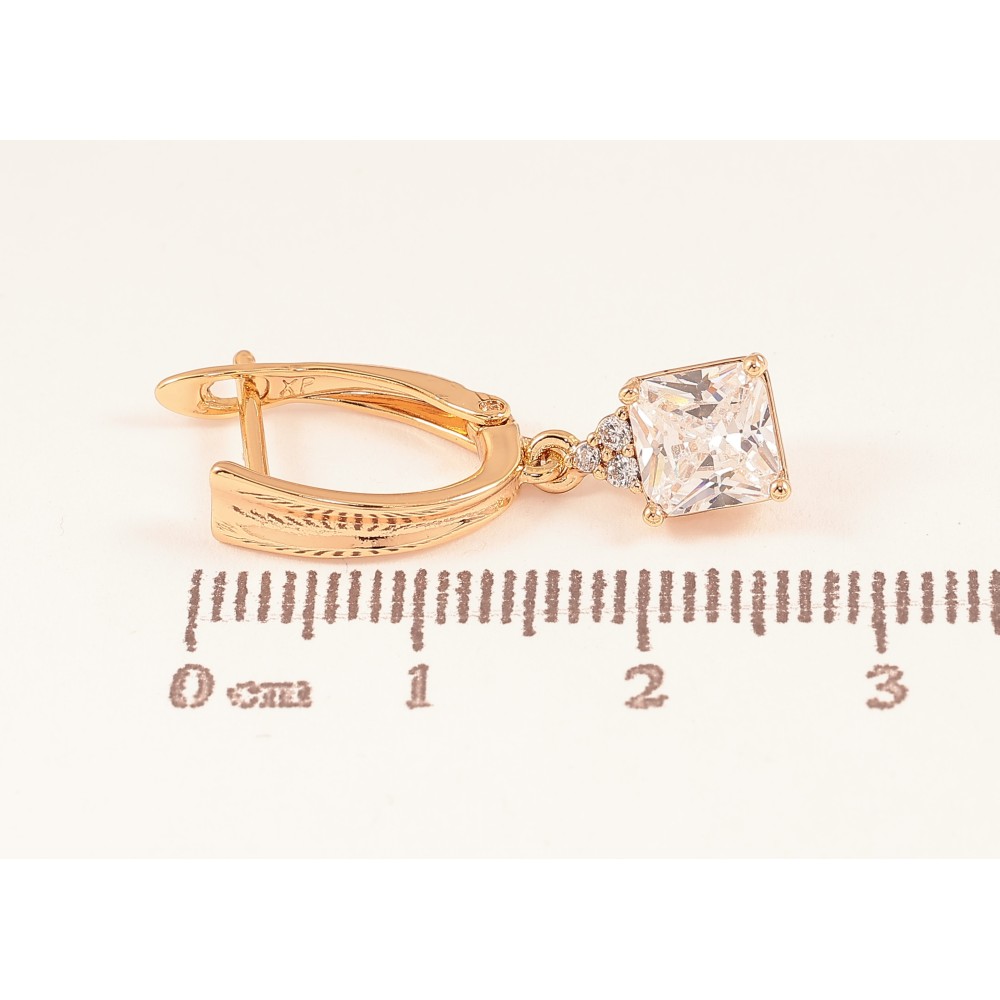 Серьги Xuping цвет Позолота 18К английский замок "Кристальные подвески"