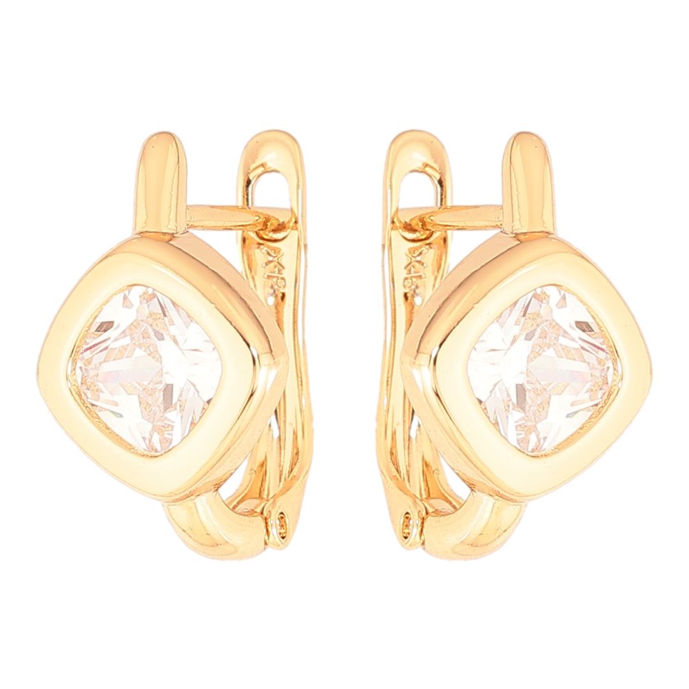 Серьги Xuping цвет Позолота 18K английский замок "Кристальные ромбы"