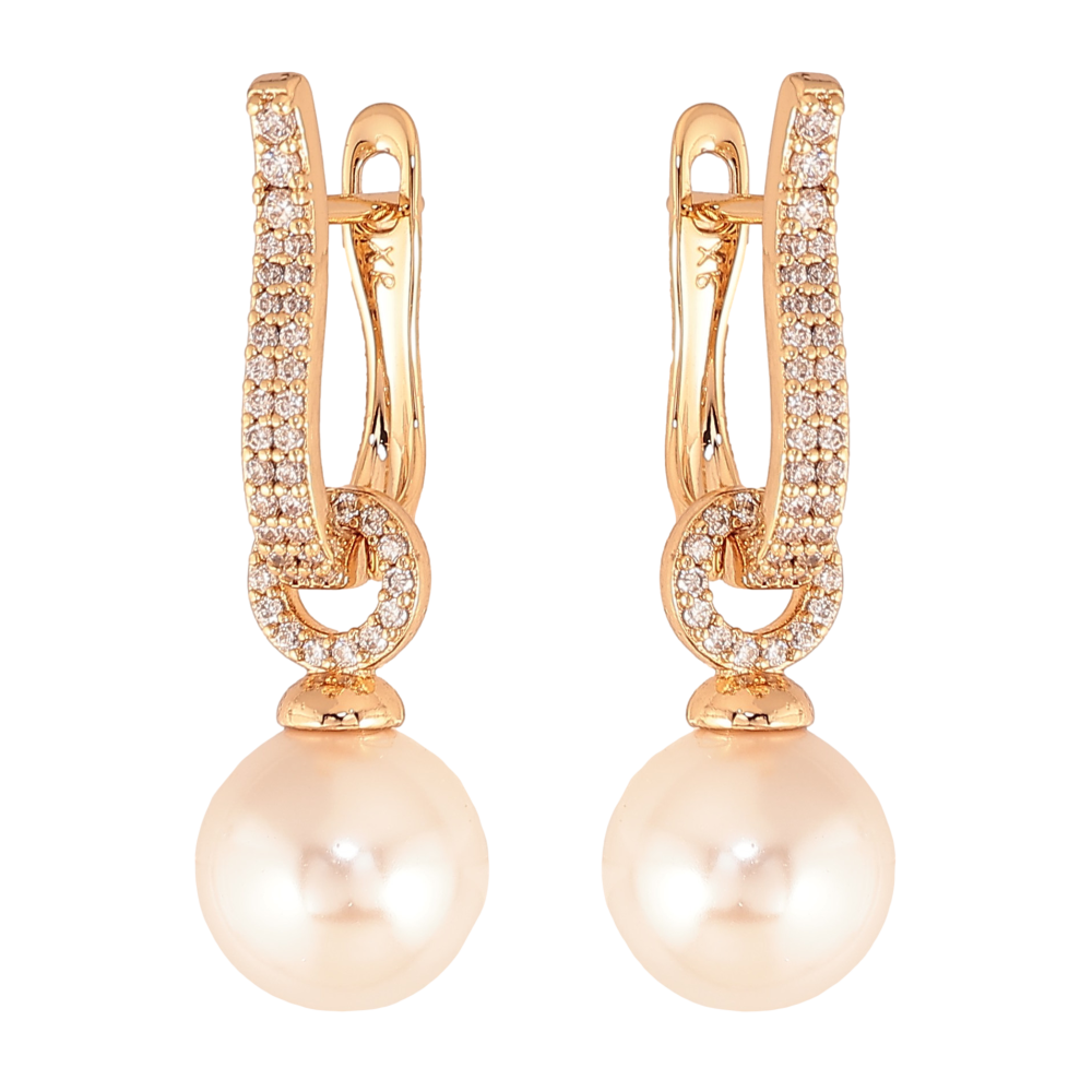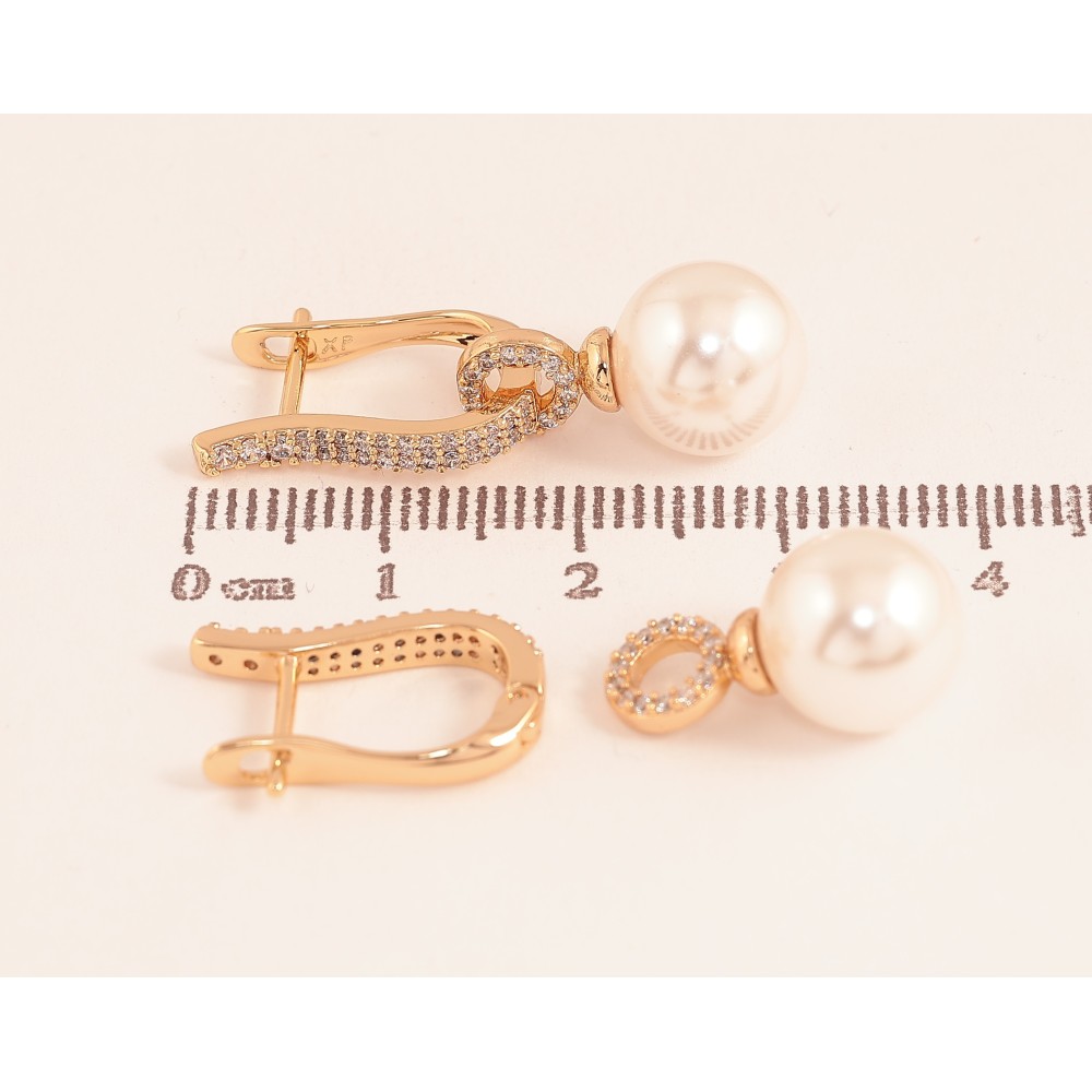 Серьги Xuping цвет Позолота 18К английский замок "Жемчужные подвески" 2 в 1