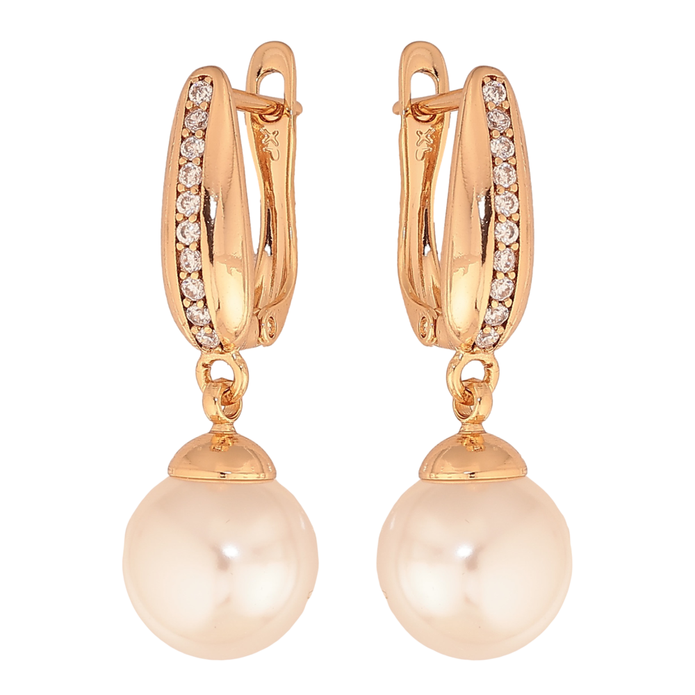 Серьги Xuping цвет Позолота 18К английский замок "Жемчужные подвески"