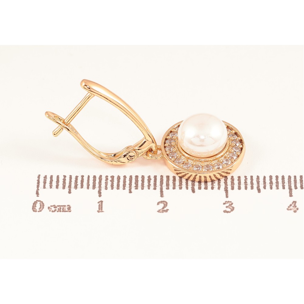 Серьги Xuping цвет Позолота 18К английский замок "Жемчужные подвески"