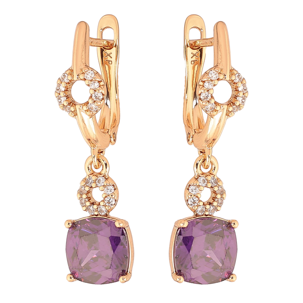 Серьги Xuping цвет Позолота 18K английский замок "Подвески с сиреневыми кристаллами"