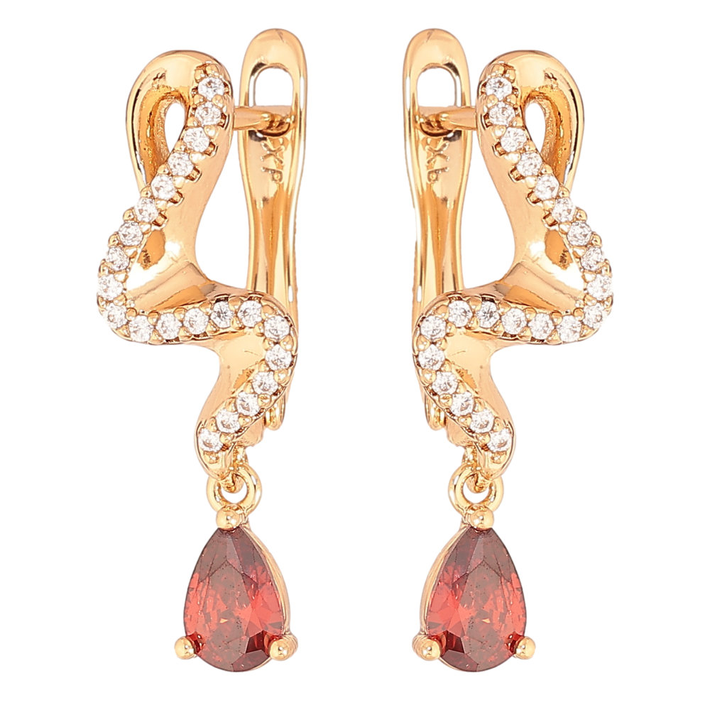 Серьги Xuping цвет Позолота 18K английский замок "Подвески с красными кристаллами"