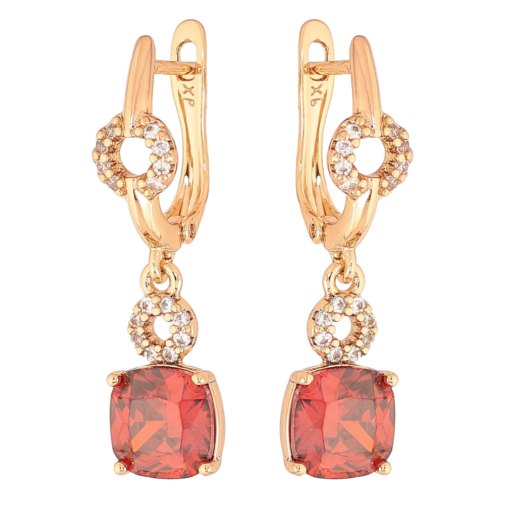 Серьги Xuping цвет Позолота 18K английский замок "Подвески с красными кристаллами"