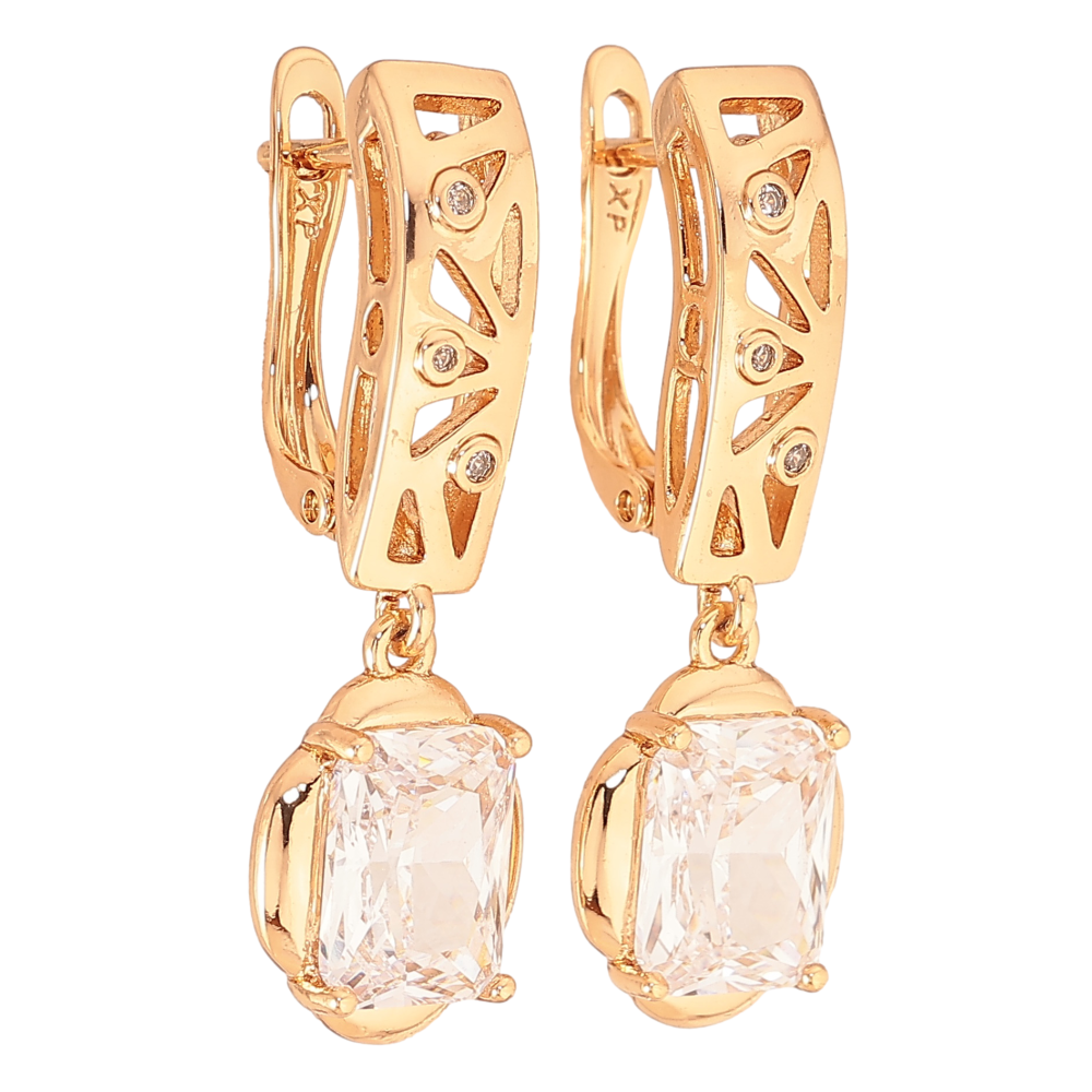 Серьги Xuping цвет Позолота 18K английский замок "Подвески с кристаллами"