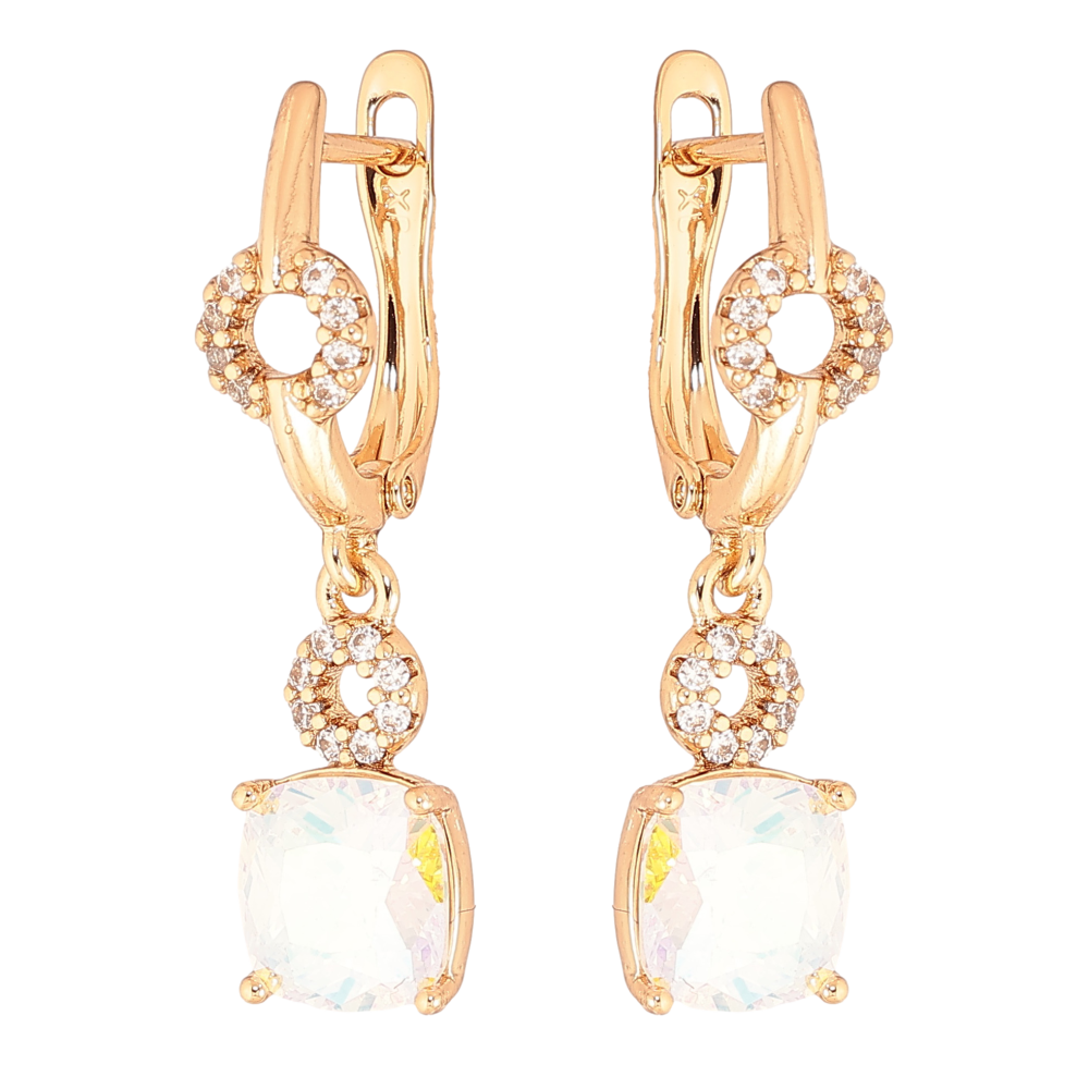 Серьги Xuping цвет Позолота 18K английский замок "Подвески с радужными кристаллами"