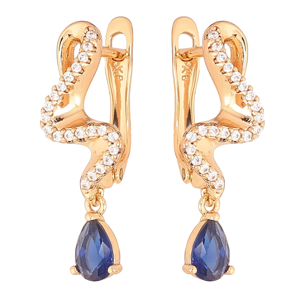 Серьги Xuping цвет Позолота 18K английский замок "Подвески с синими кристаллами"