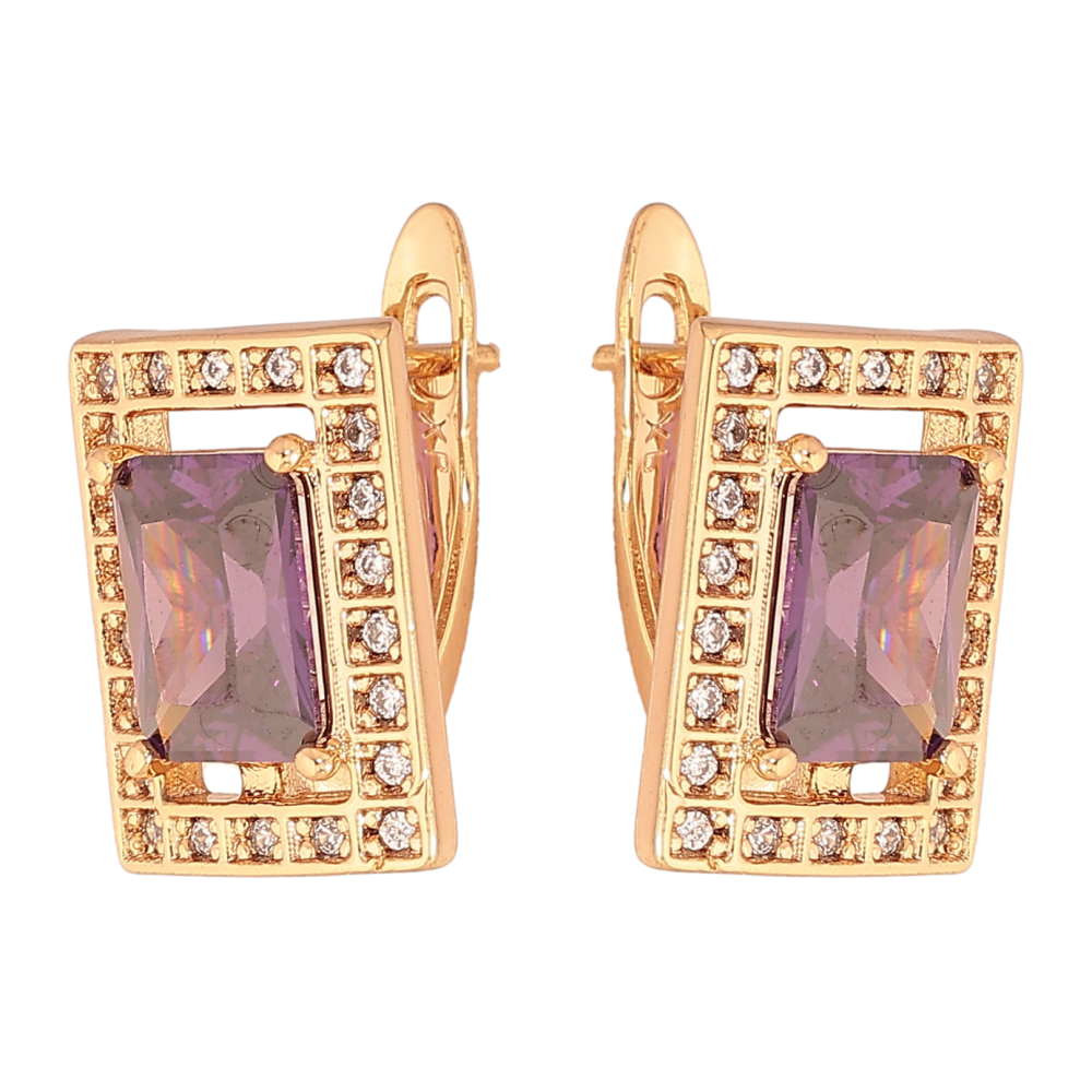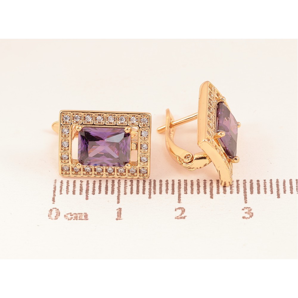 Серьги Xuping цвет Позолота 18К английский замок "Прямоугольники с сиреневыми кристаллами"